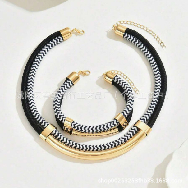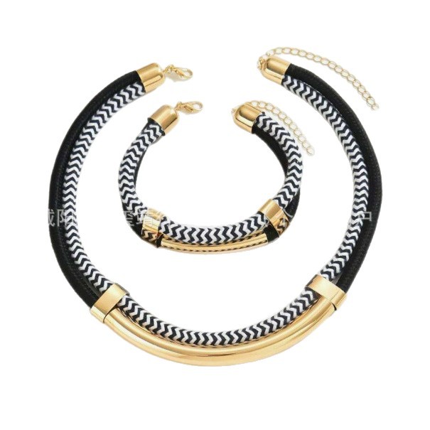 European and American Cross-Border Personalized Double-Layer Braided Rope Tube Bracelet Necklace Jewelry Set Creative Women's Jewelry Set Wholesale