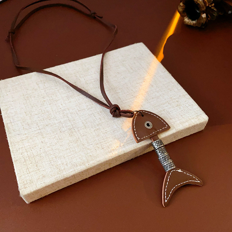 Color: 17#Necklace-black-brown-leather cord