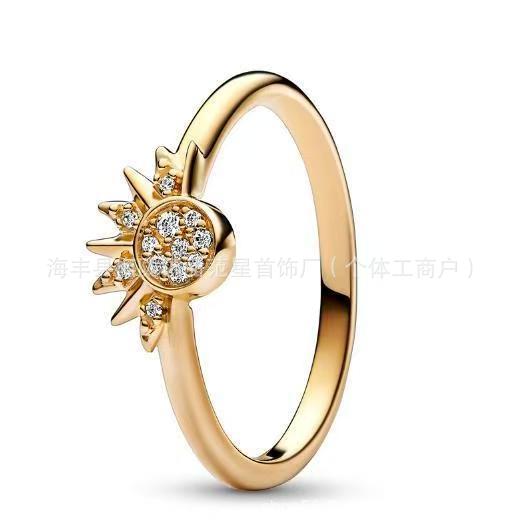 White Copper Silver-Plated S925 Sun and Moon Heart Ring with Diamonds for Couples, Gold Ring with High-End Feel