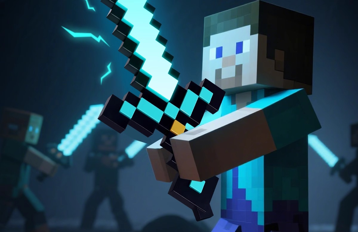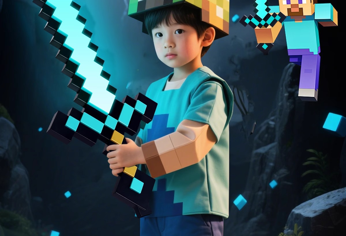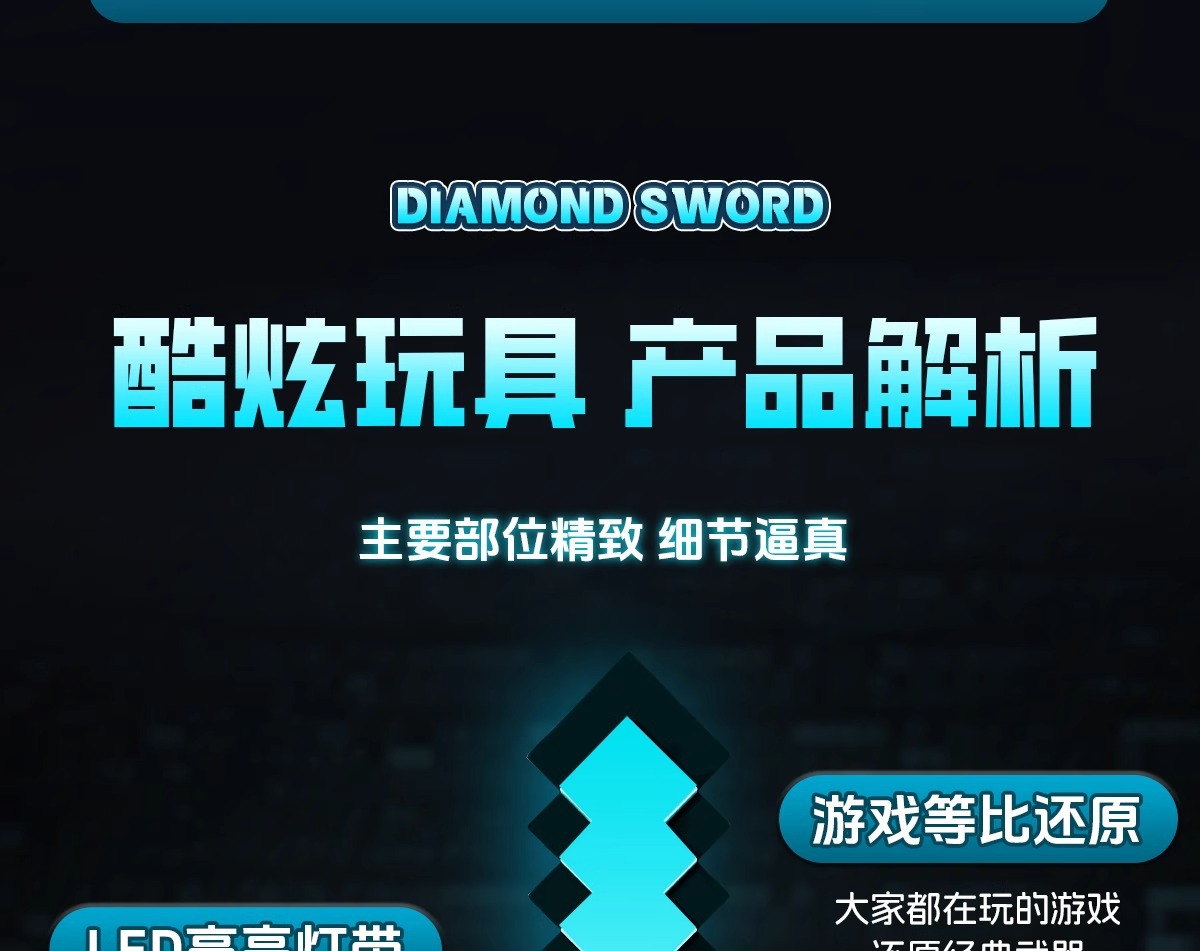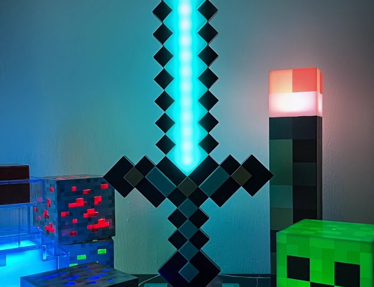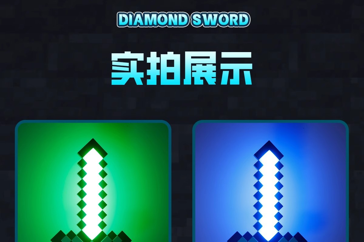 Minecraft Pixel Mc Seven-Color Diamond Sword Children's Boys and Girls Glowing Sword Decompression Minecraft Toy