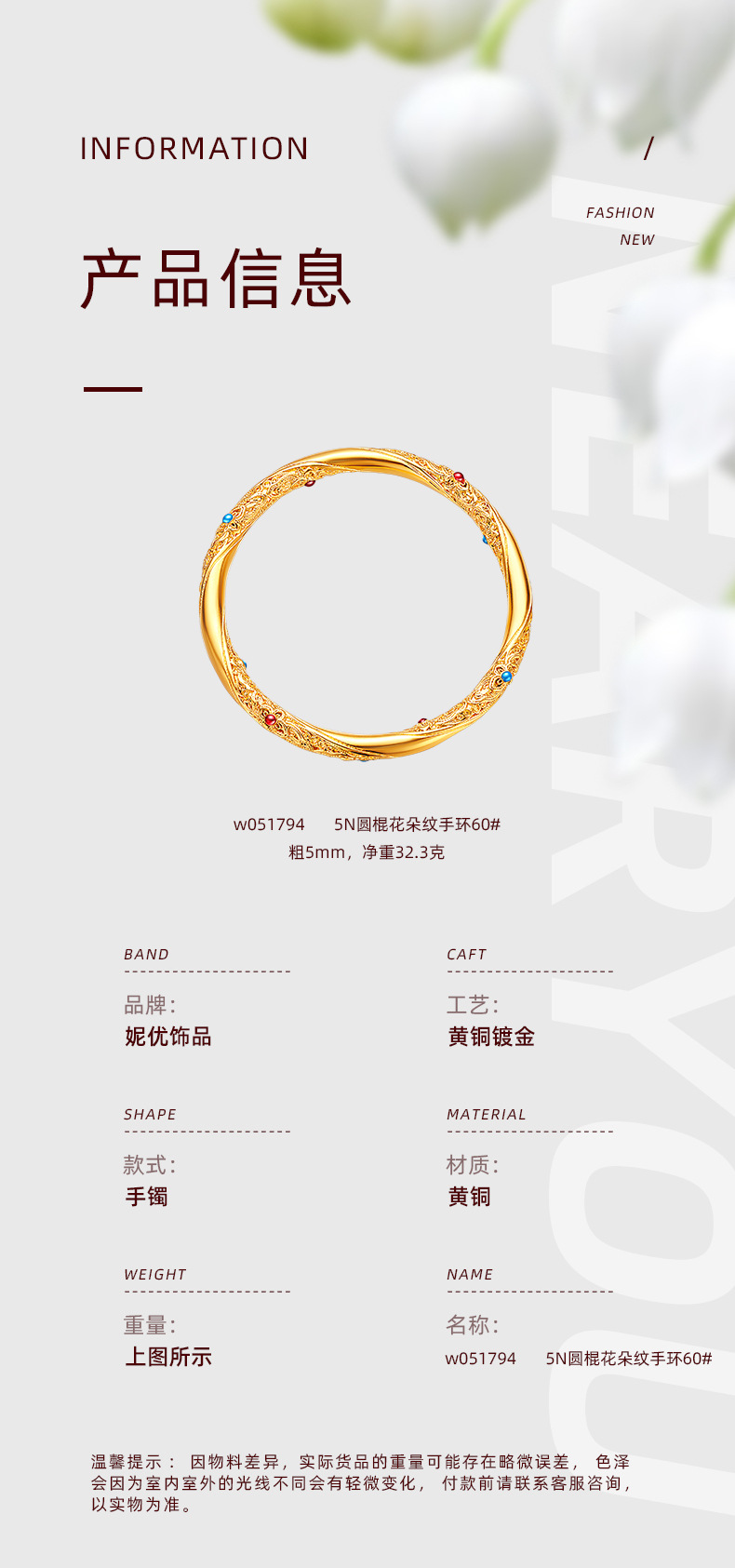 Item number: W051795 5n round stick flower pattern bracelet 62 #