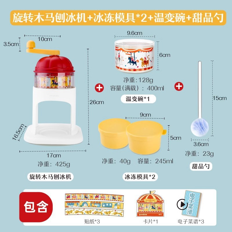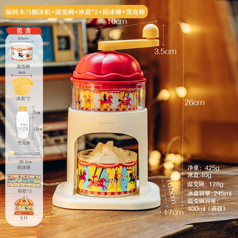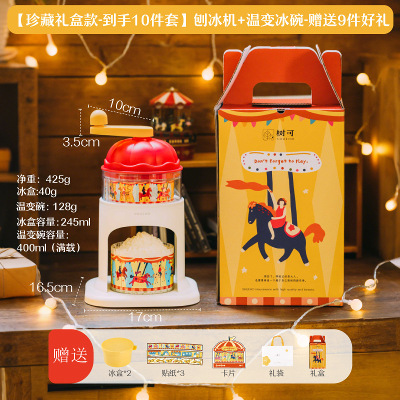 Color: [children's day gift box set of 10 pieces] carousel shaved ice machine + temperature changing ice bowl - 9 free gifts