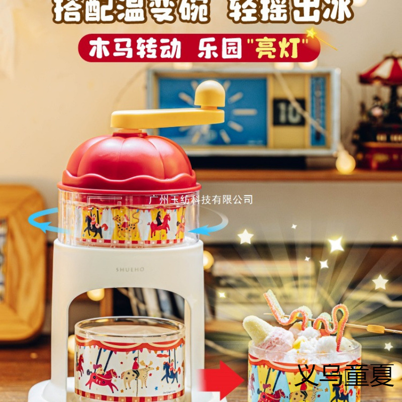 Color: [8-piece temperature-changing bowl set] temperature-changing bowl + carousel shaved ice machine + ice box*2