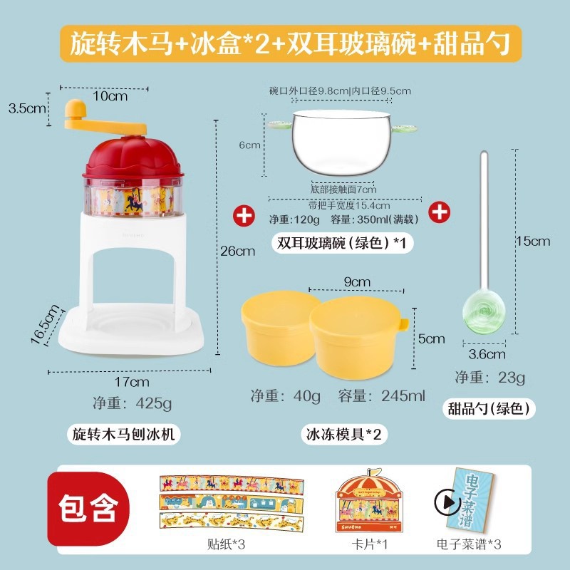 Color: [9-piece set of double-eared bowls and spoons] double-eared bowl + spoon + carousel shaved ice machine + ice box*2