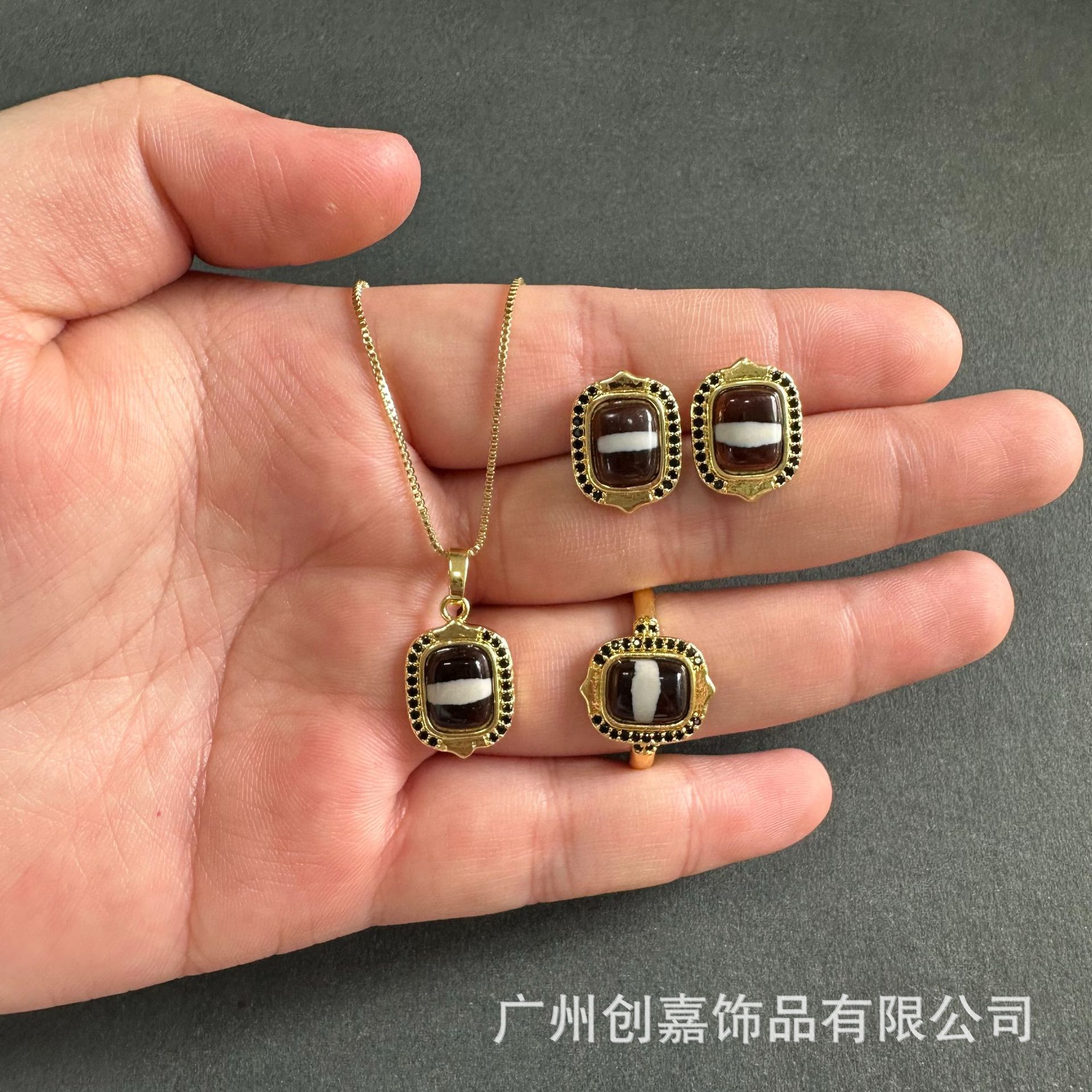 New Xizang-Style Agate Dzi Bead Inlaid High-Quality Set Ethnic Jewelry Xizang Niche Personality Manufacturer Wholesale