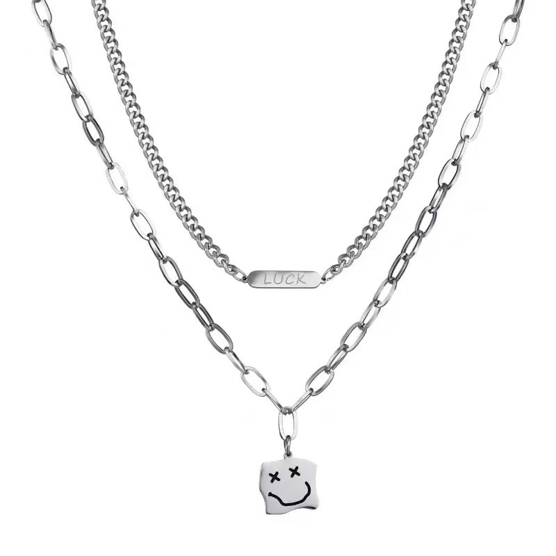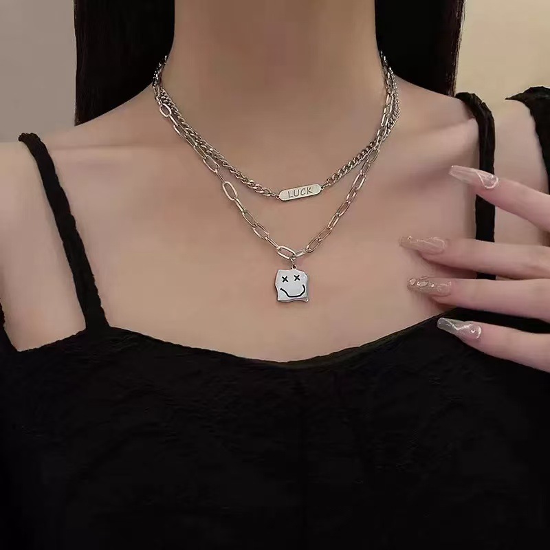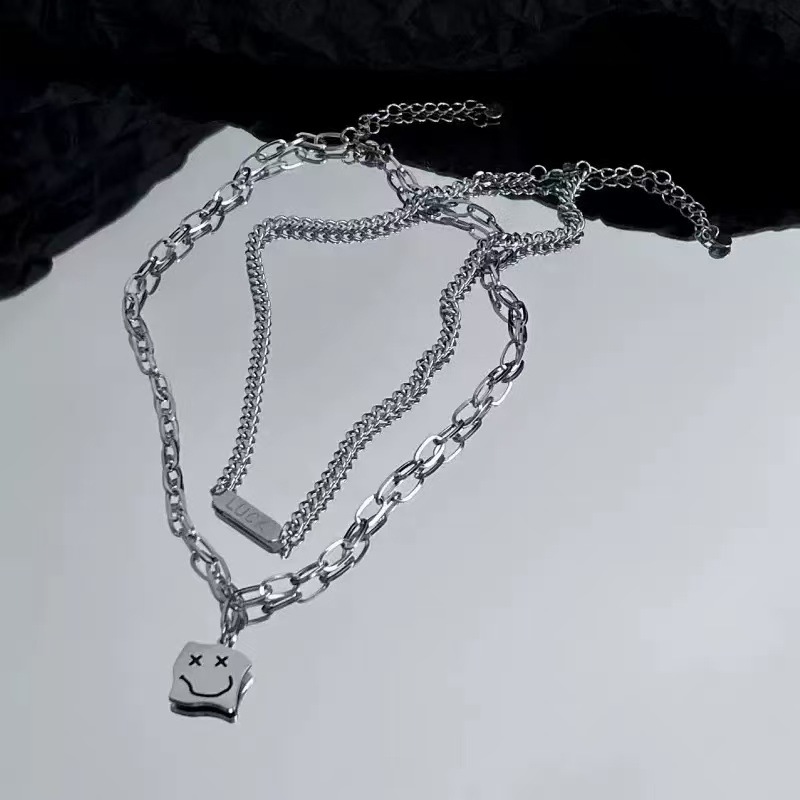 Double-Layer Letter Smiley Face Children's Necklace Men's Niche Design Sweater Chain Women's Trendy Versatile Street Dance Runway Accessory