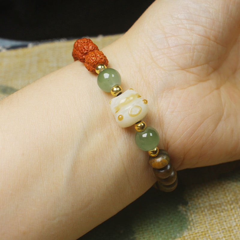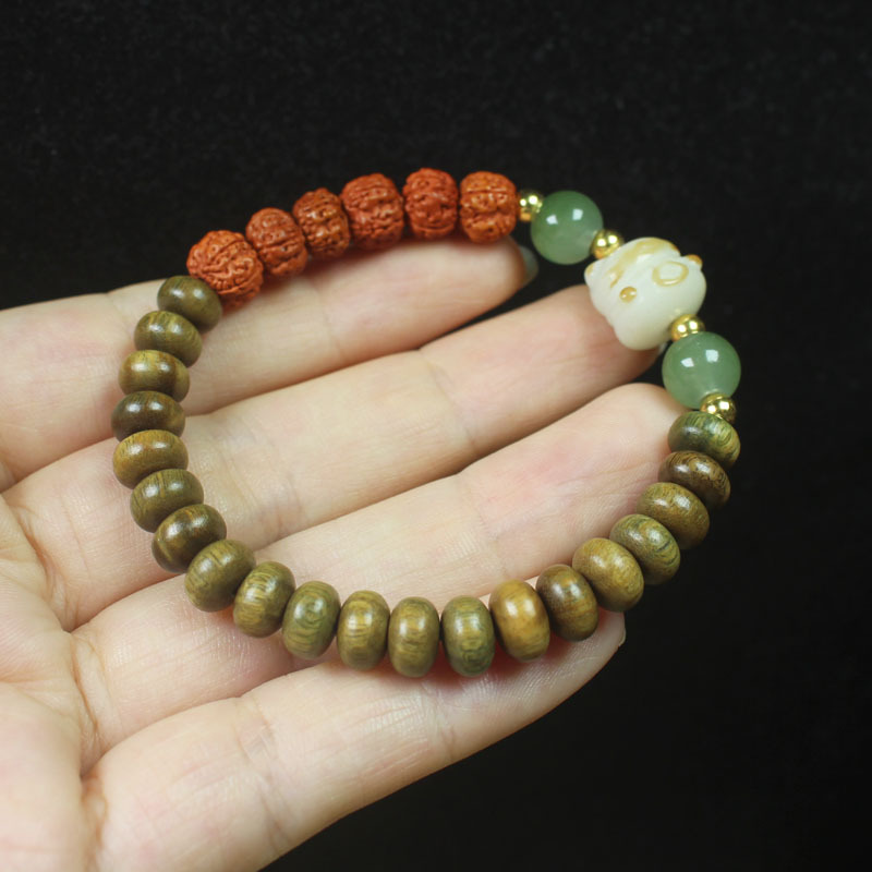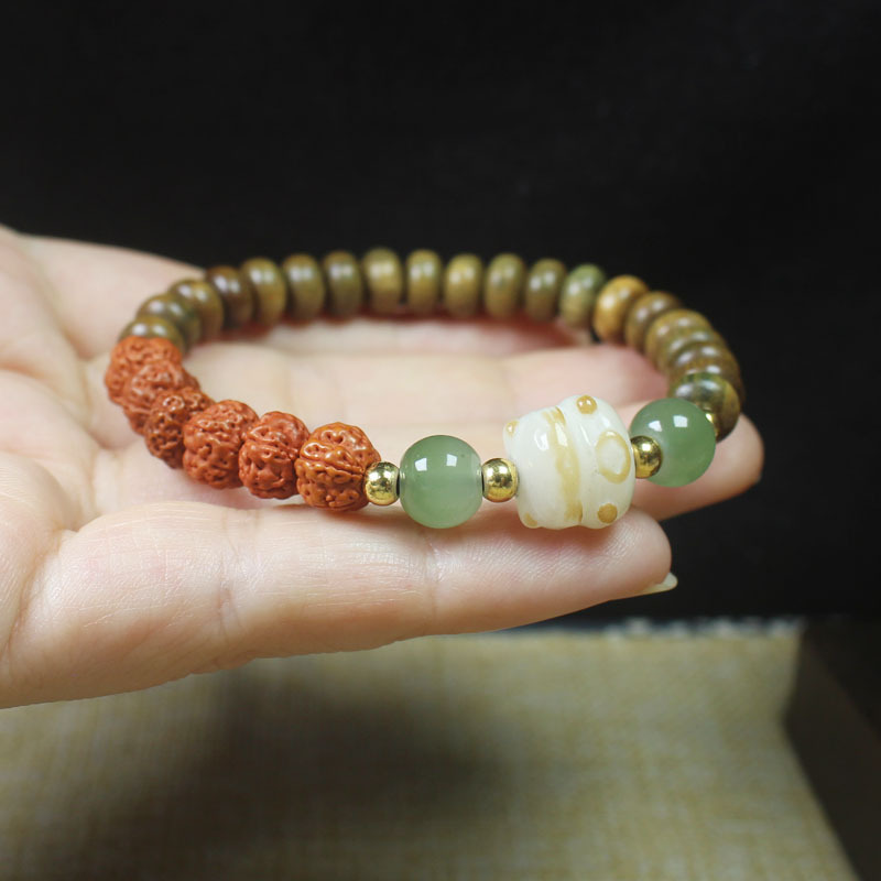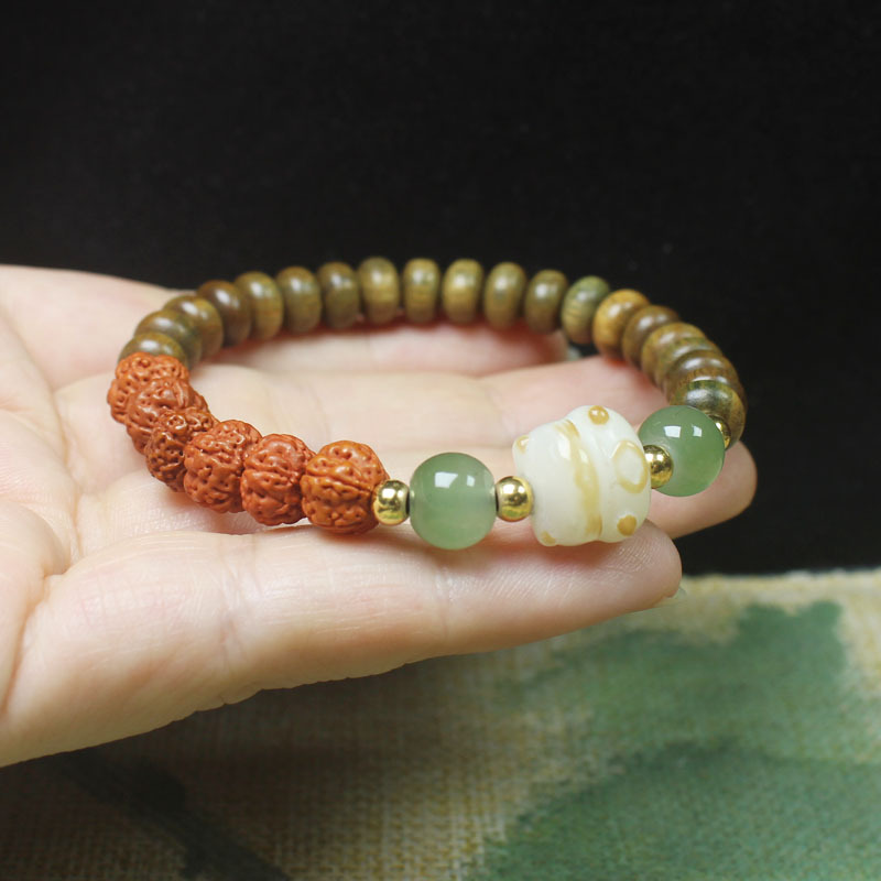 【产品名称】绿檀算盘珠搭配金刚菩提手串木花朵国风手链男女饰品文玩佛珠念珠