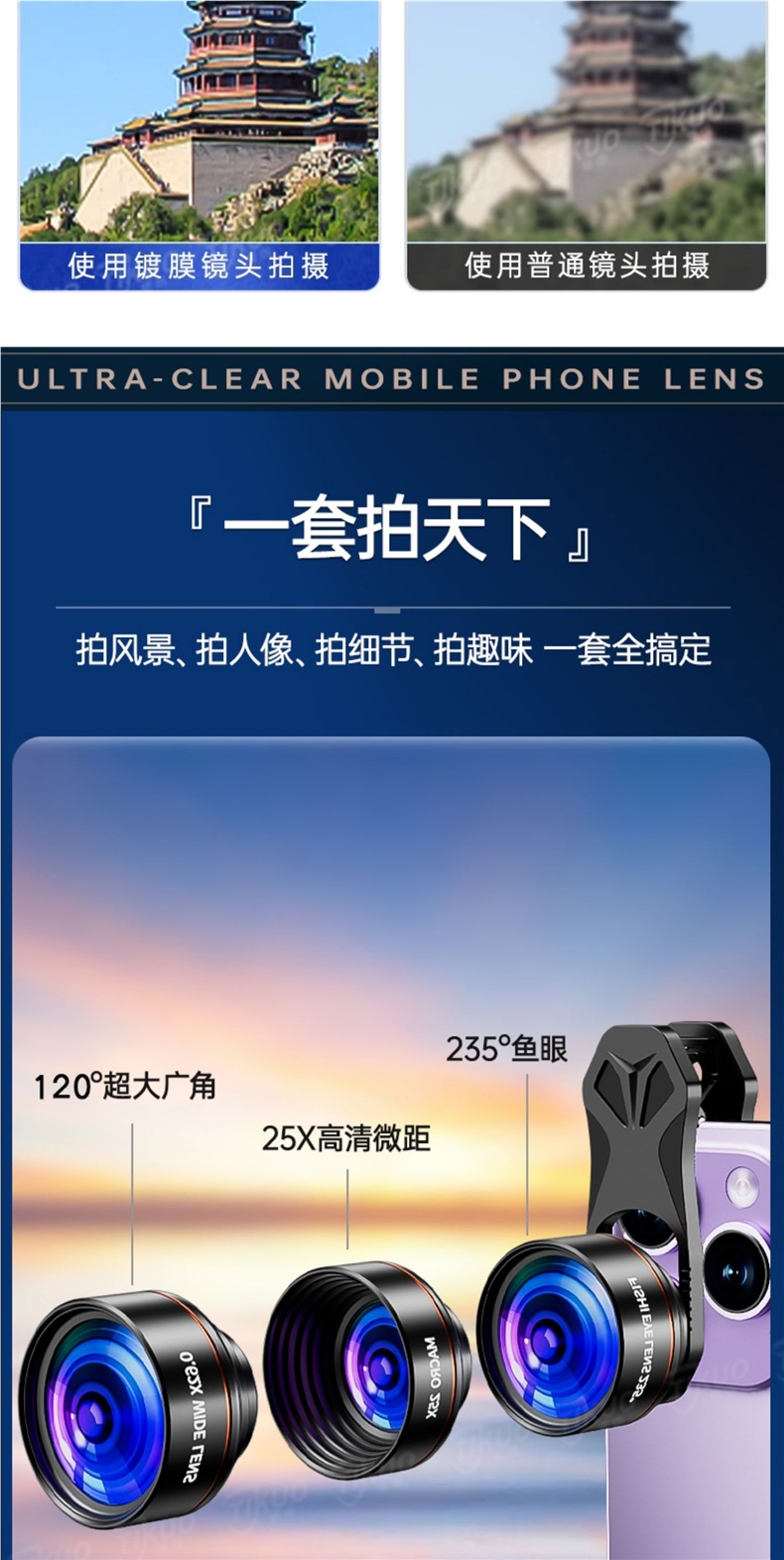 [three-piece set] 4k slr-level three-in-one lens [120°Extra wide angle + 25x macro + 235°Fish eye]