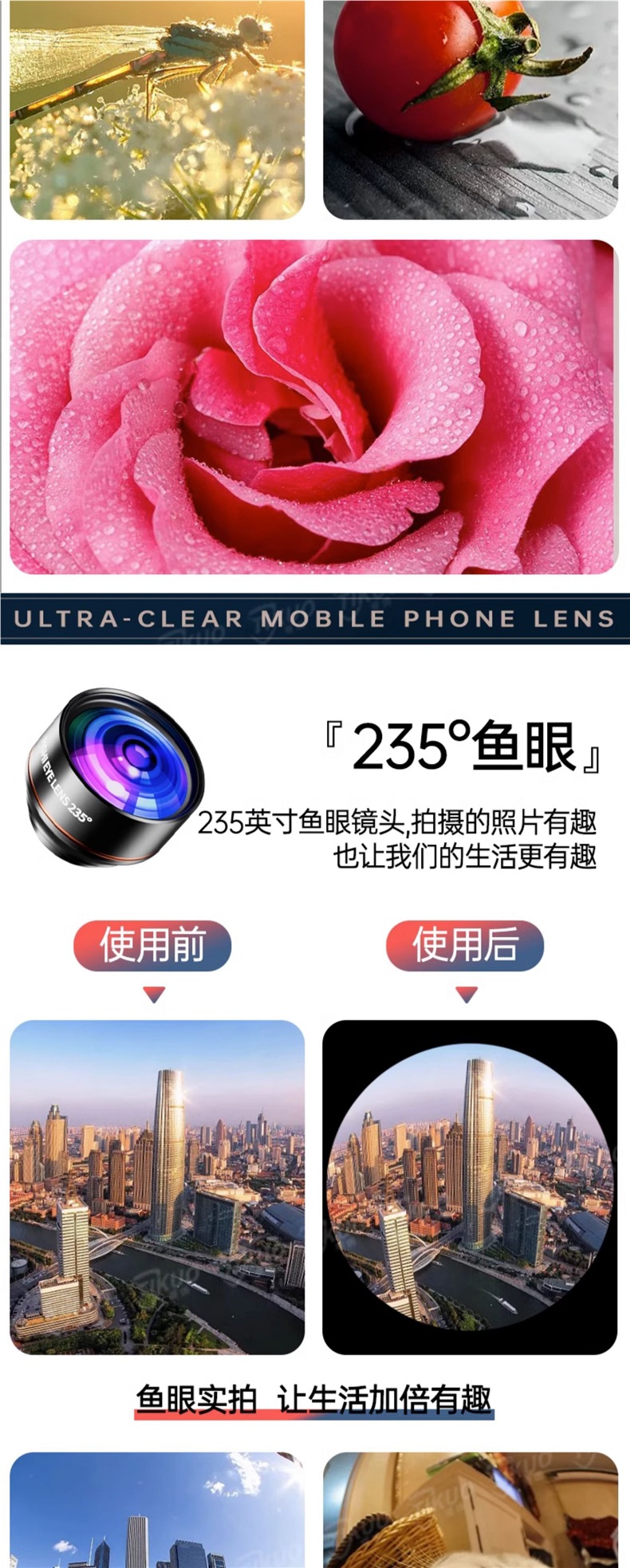 [two-piece set] 4k slr-level ultra-clear dual lenses [235°Fisheye + 25x macro]