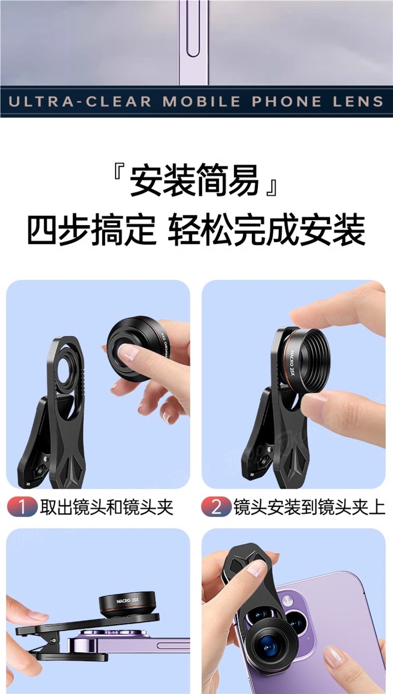 [two-piece set] 4k slr-level ultra-clear dual lenses [120°Ultra wide angle + 25x macro]