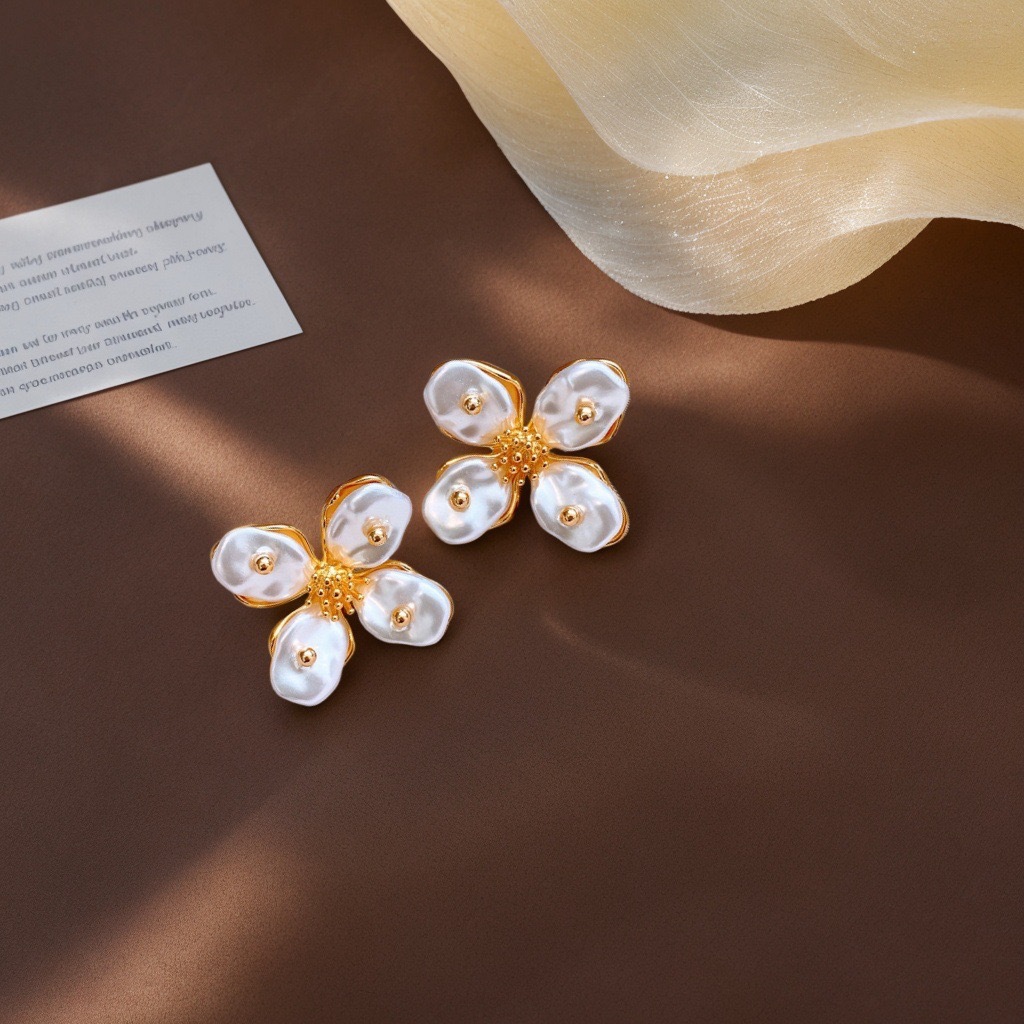 Fashionable and Unique Design Baroque Pearl Flower Earrings for Women Niche Accessible Luxury Petals Gentle Elegant Earrings Earrings