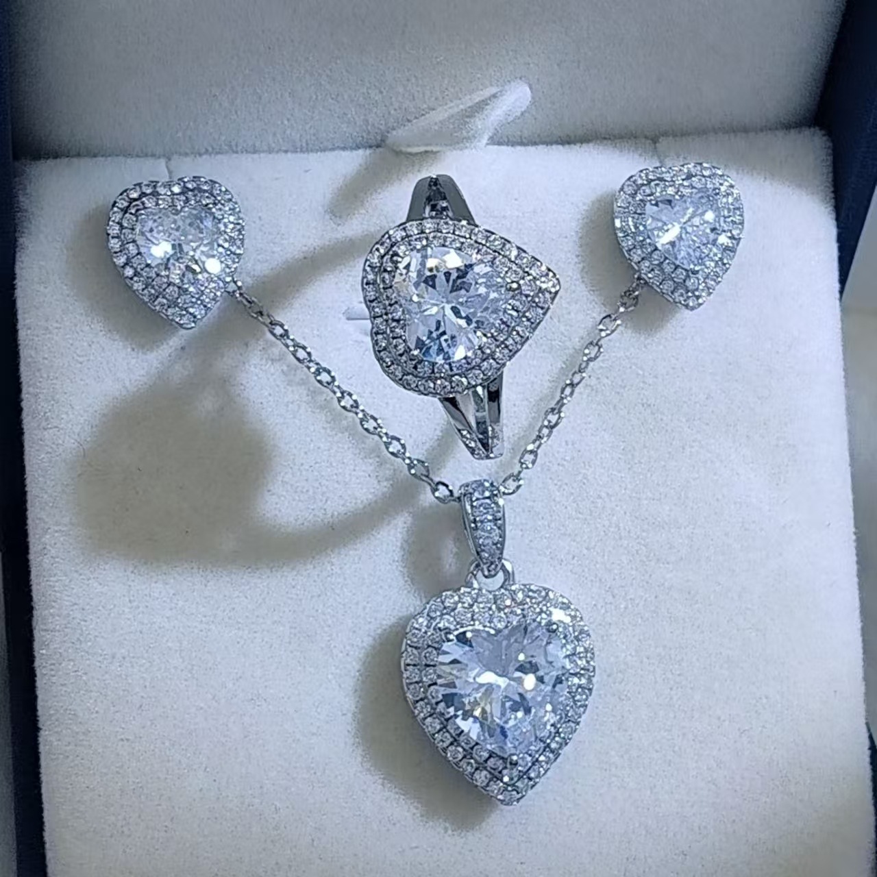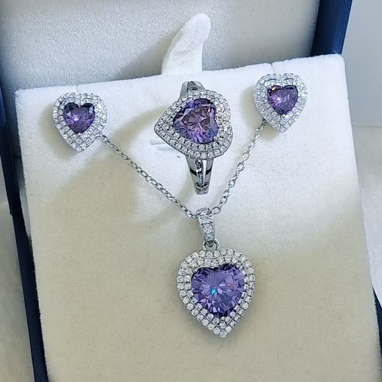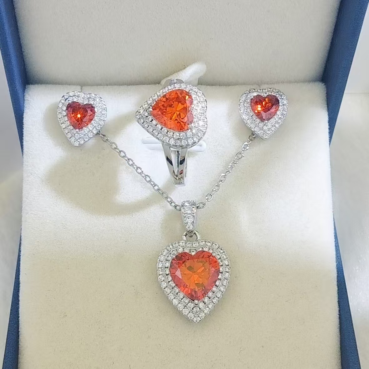 Picture: Live broadcast popular jewelry colorful treasure high carbon diamond heart-shaped jewelry three-piece set