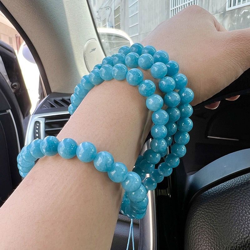 Natural Old Mine Aquamarine 108 Beads Multi-Circle Sweater Chain Car Hanging Rosary Ethnic Temperament Luxury Gift