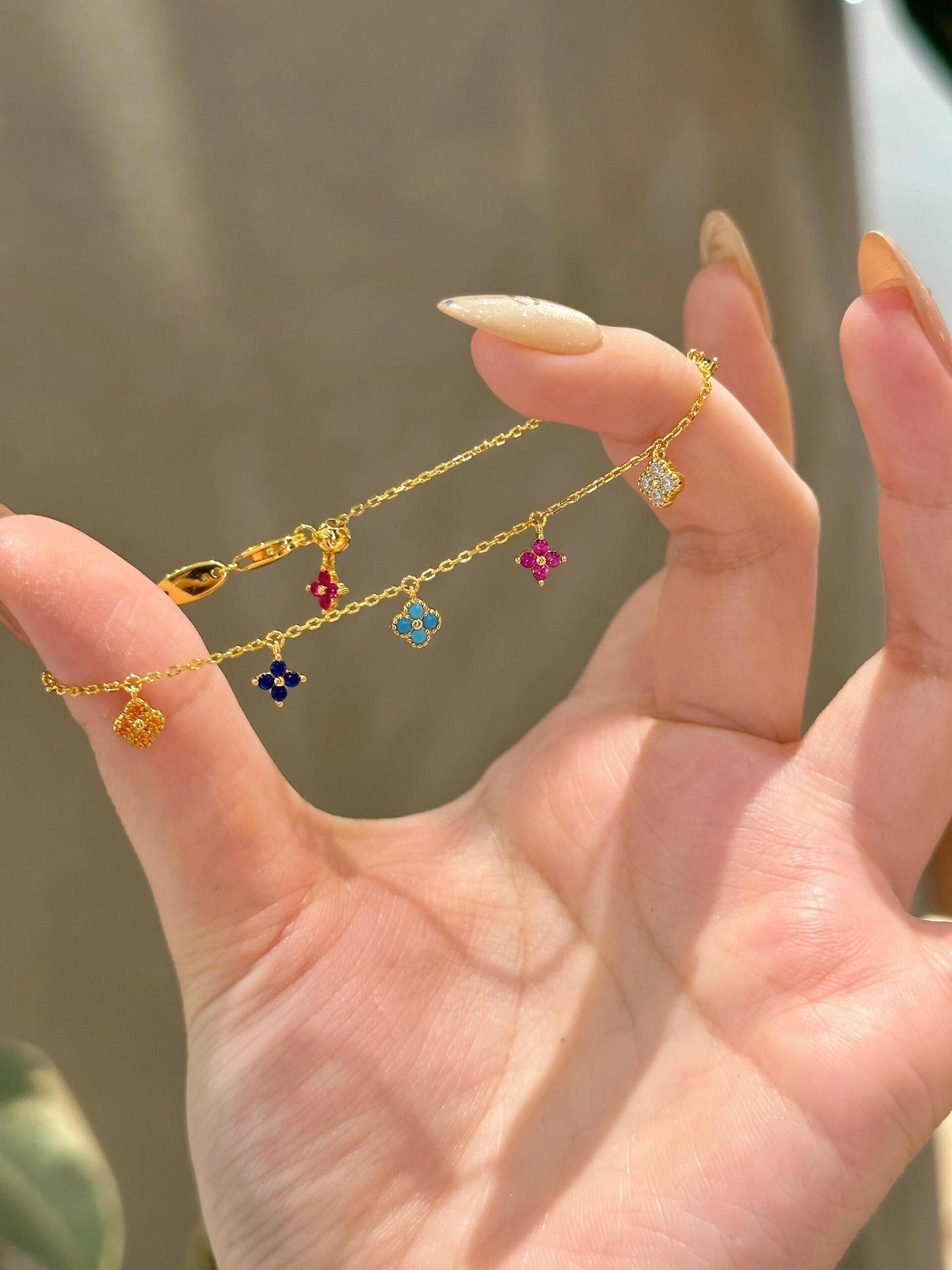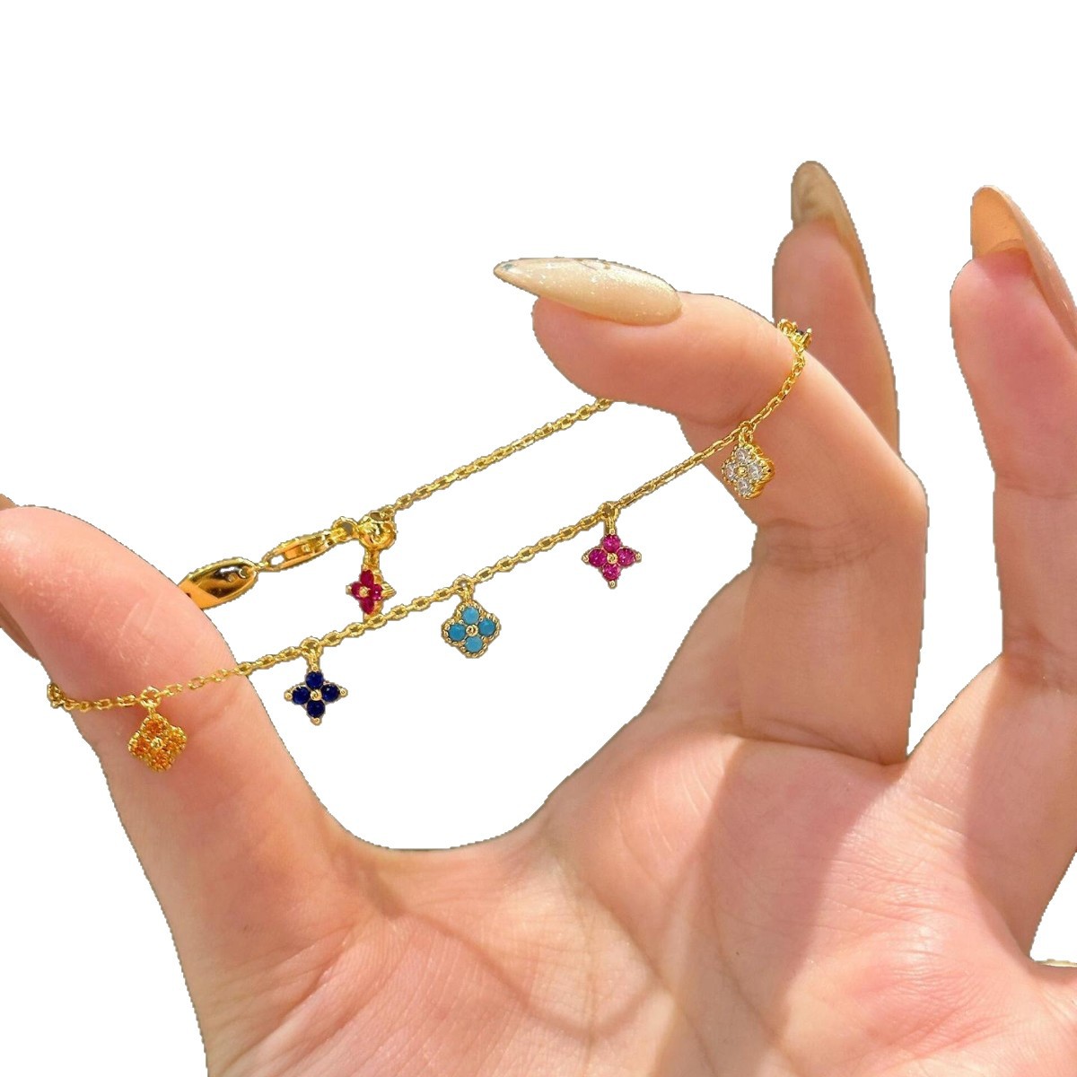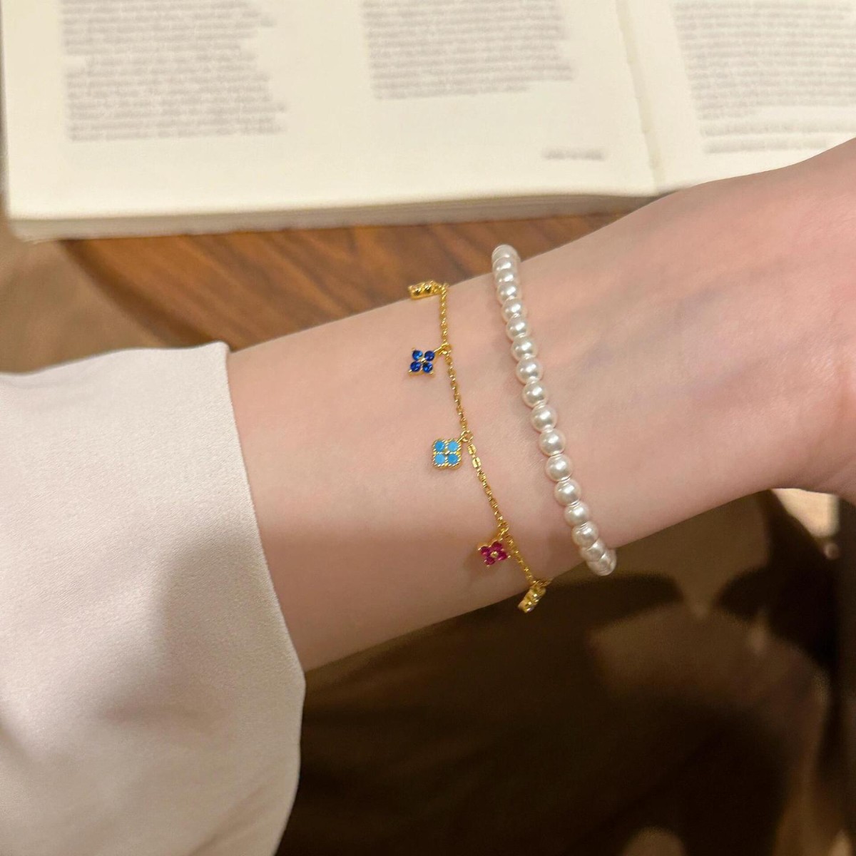 Dopamine Colorful Lucky Four-Leaf Flower Bracelet for Women Vintage Forest Style Versatile Bracelet Niche Design Hand Jewelry