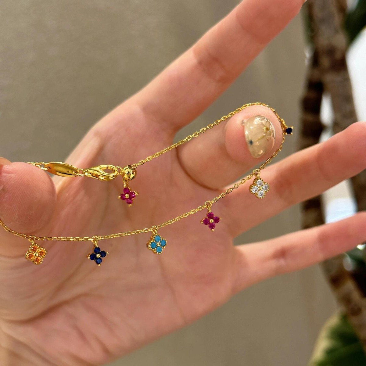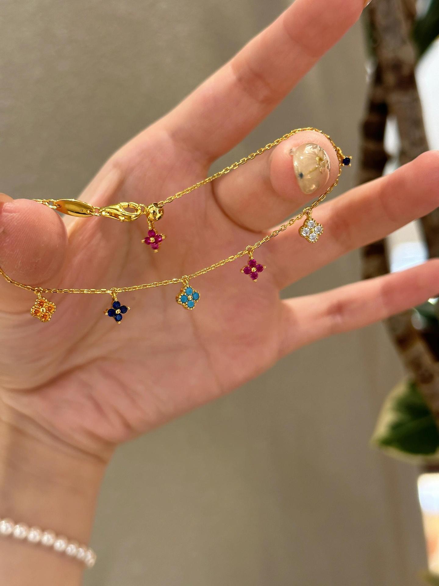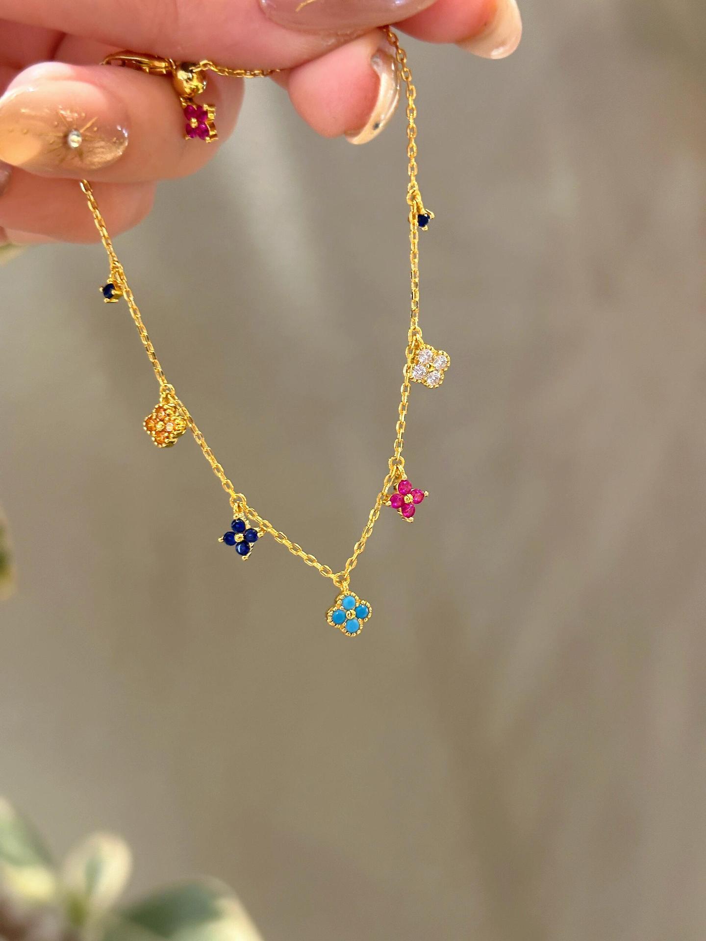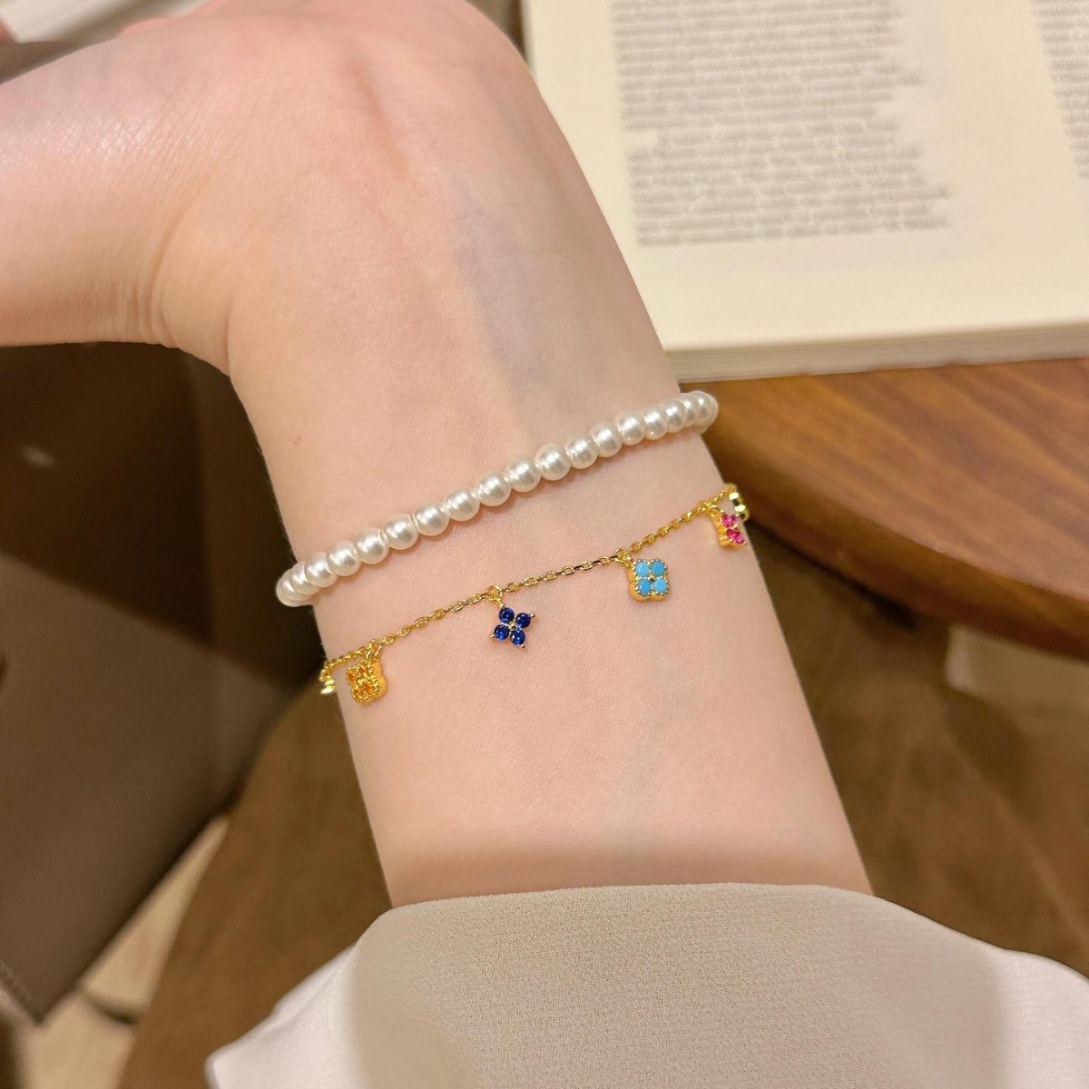 Dopamine Colorful Lucky Four-Leaf Flower Bracelet for Women Vintage Forest Style Versatile Bracelet Niche Design Hand Jewelry
