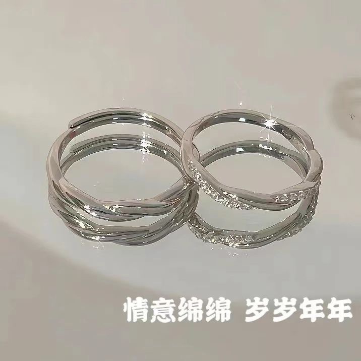 Sentimental Couple Rings Ins Niche Design Couple Open Ring for Men and Women a Pair of Chinese Valentine's Day Gifts