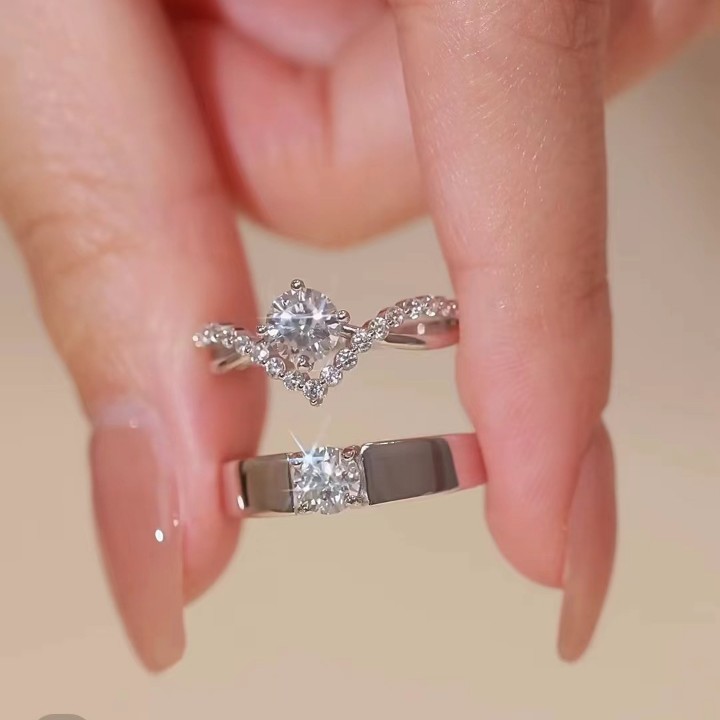 Moissanite Diamond Ring for a Couple, Men's and Women's Wedding Couple Rings, Super Shiny Light Luxury Simulated Diamond Fake Proposal Tail Ring