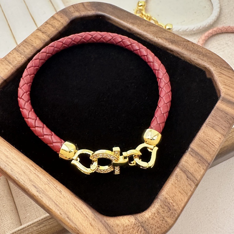 Unique Personality Micro-Inlaid Zircon Horseshoe Clasp Bracelet for Women, Fashionable Simple Versatile Braided Leather Cord Unique Bracelet