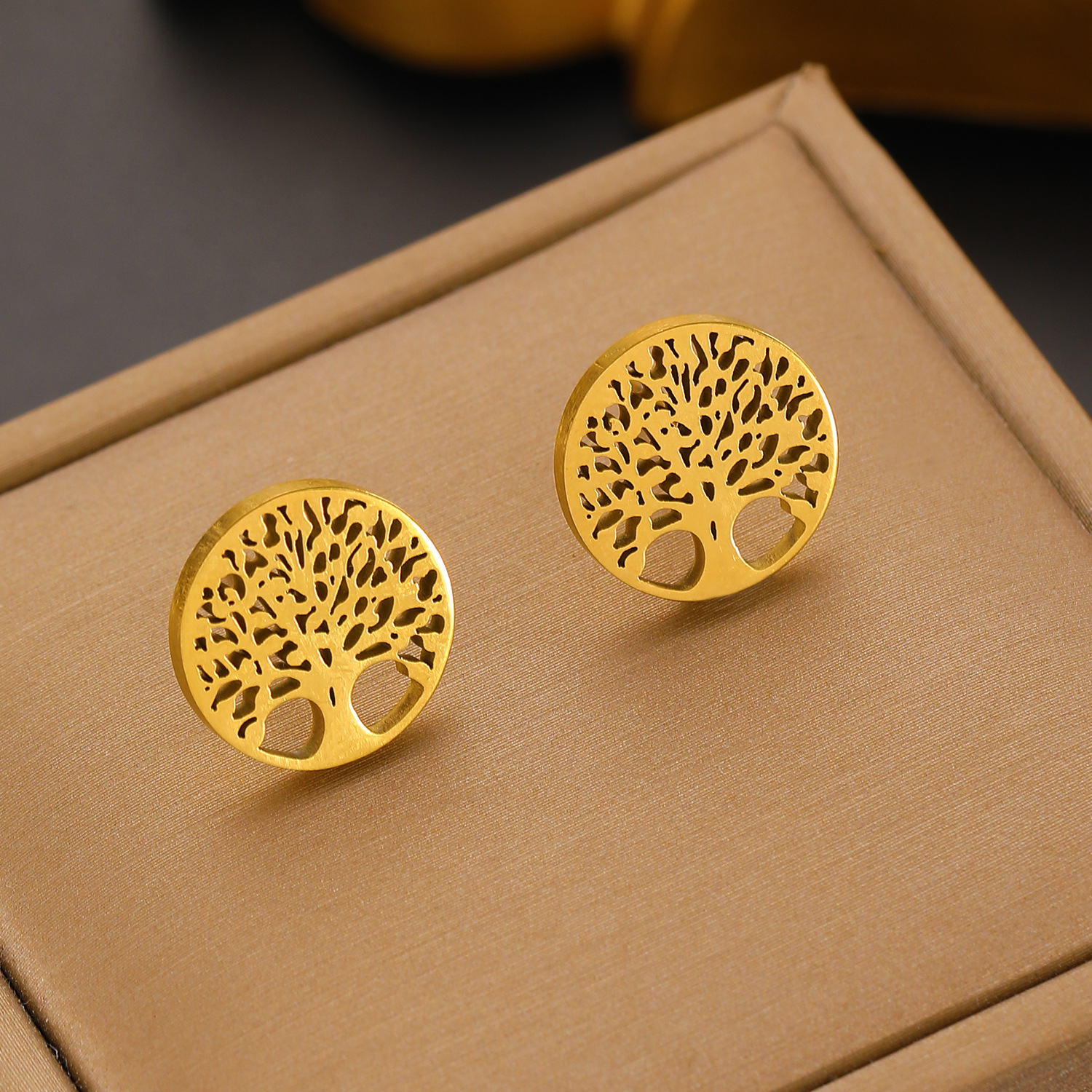 European and American Fashion Niche Design Round Hollow Tree of Life Pendant Accessories Stainless Steel Earrings Necklace Set