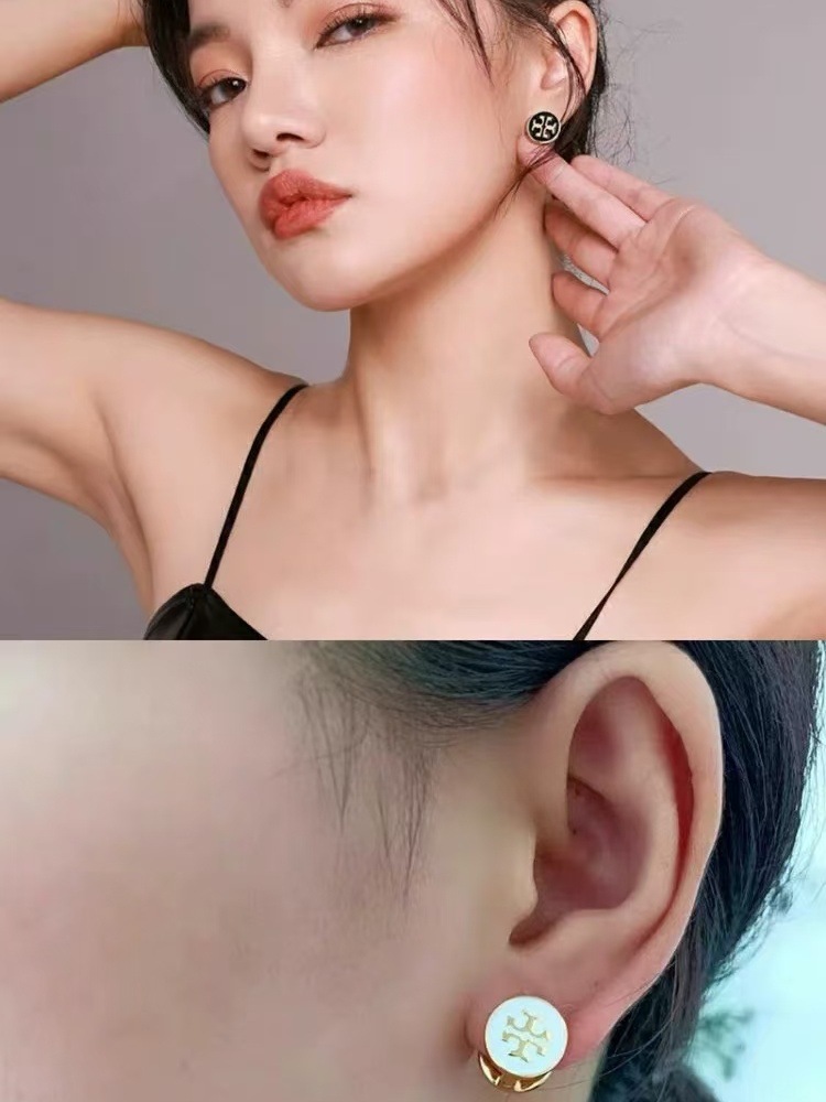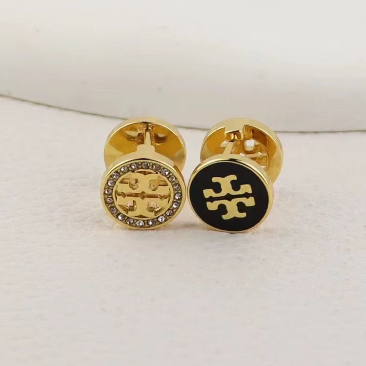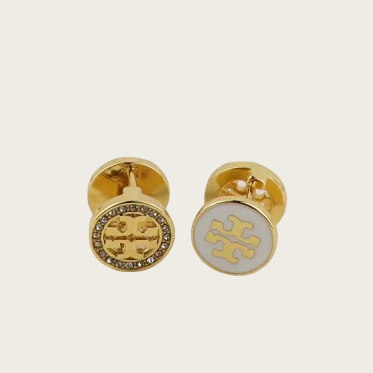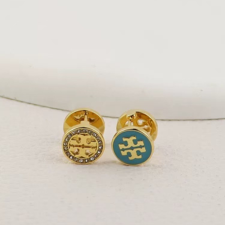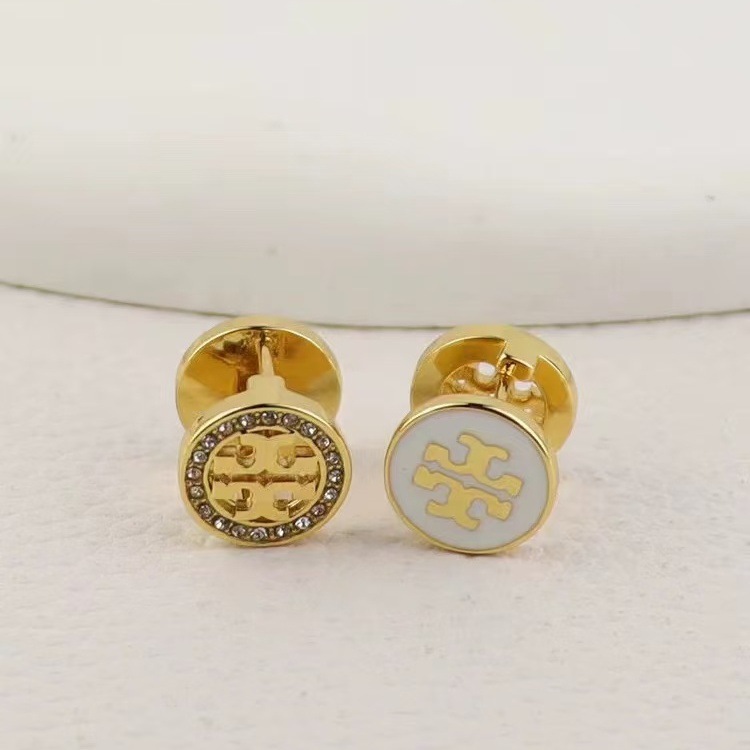Foreign Trade Tb Enamel Diamond Earrings, Double-Sided Wearable, Brass Gold-Plated Elegant High-End Round Women's Earrings Wholesale