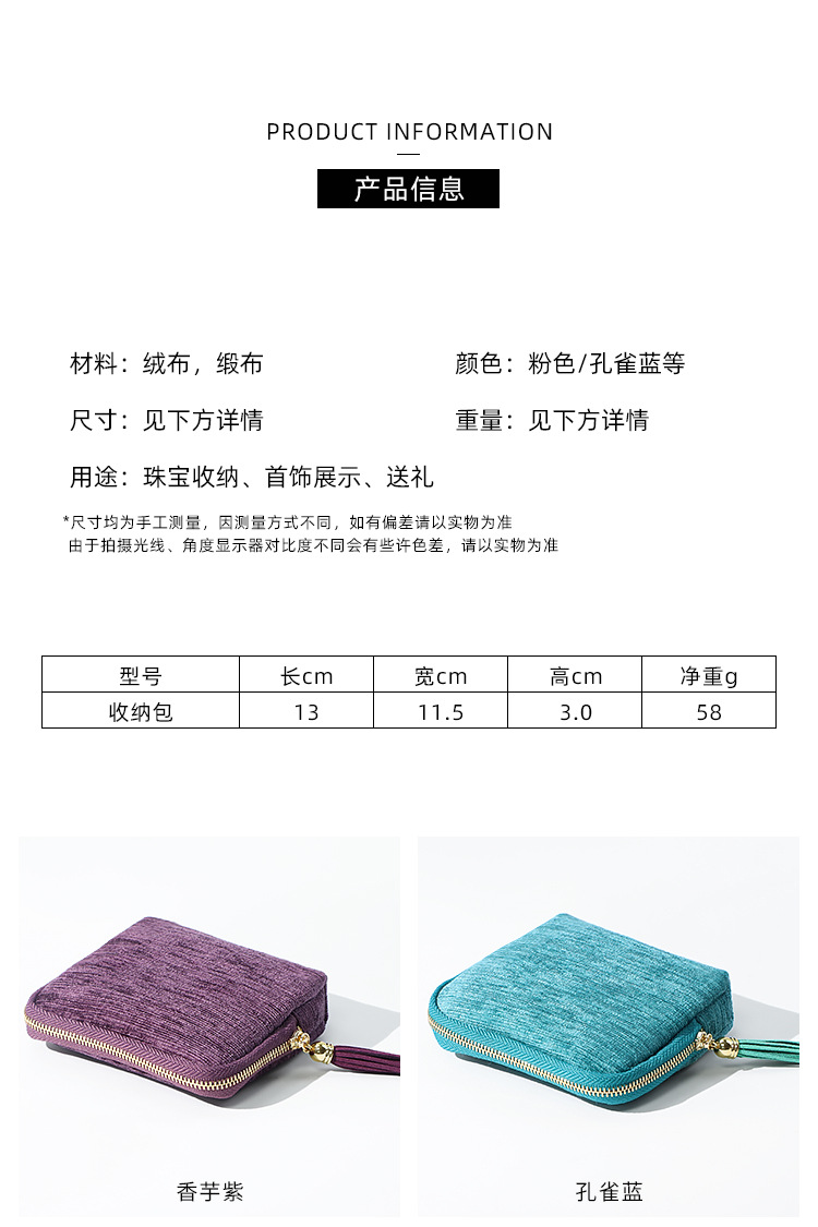 Specifications and models: Peacock blue; multi-layer zipper bag 13*11.5*3cm