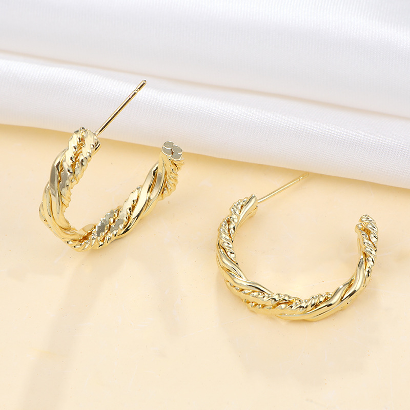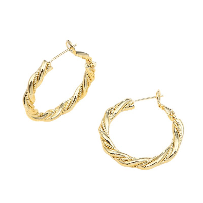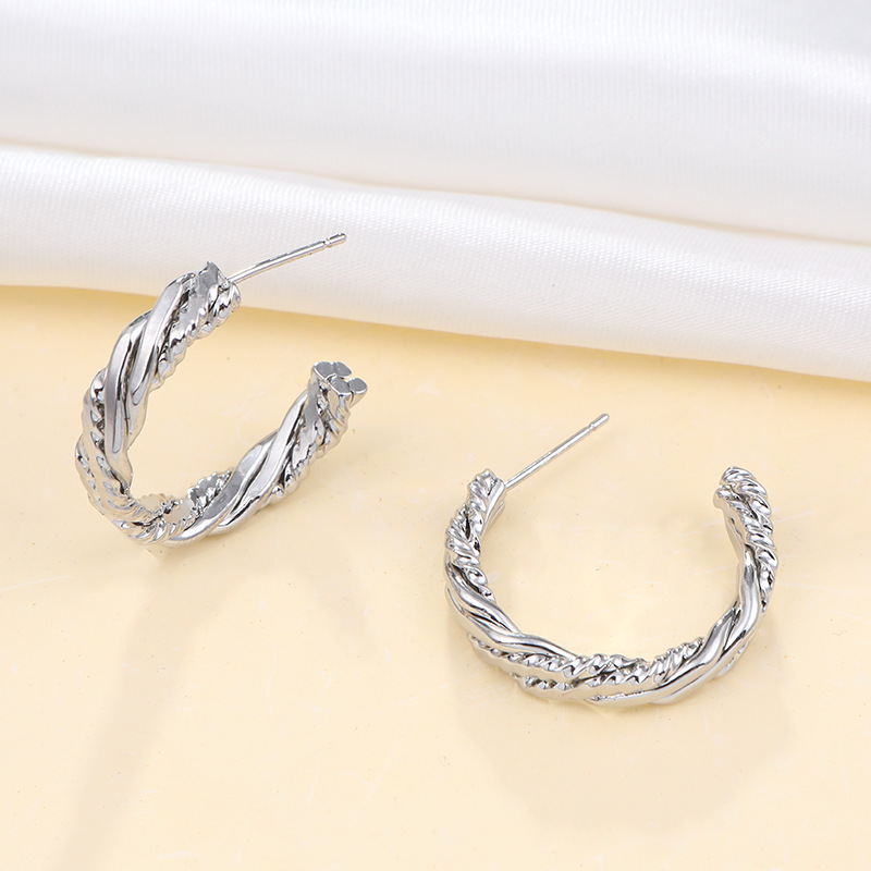 925 Silver Needle Hoop Earrings for Women, Accessible Luxury, High-End Plain Hoop Earrings, Spiral Twist Exaggerated Fashionable Simple Earrings