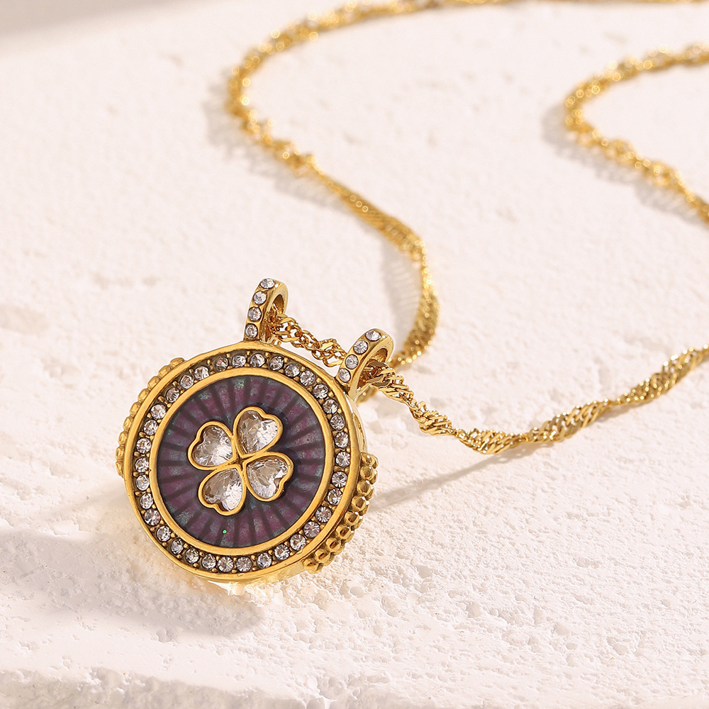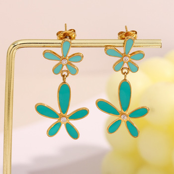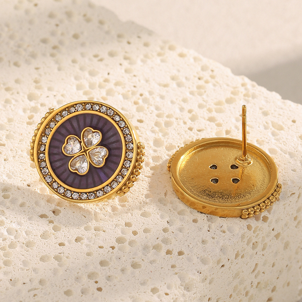 Color: Oil dripping zircon flower disc earrings-gold purple