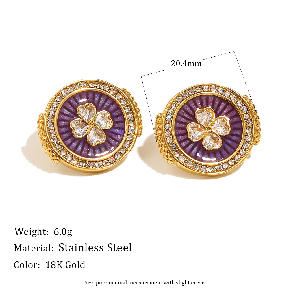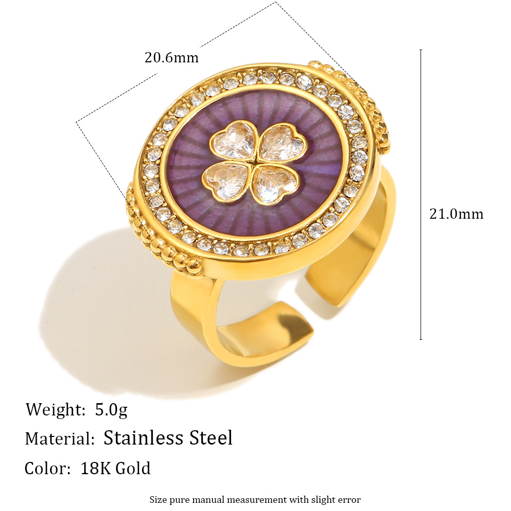 Color: Oil dripping zircon flower disc open ring-gold purple