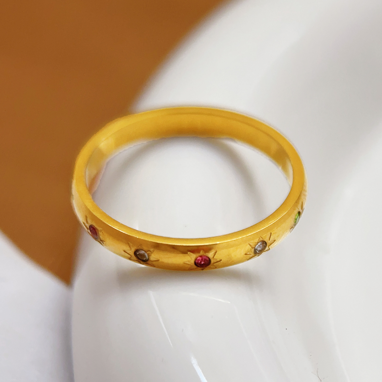 Light Luxury Niche Colored Diamond Star Ring for Women Plated with 18K Gold Ins Cool Style Fashion Titanium Steel Ring Retro Stacking Ring