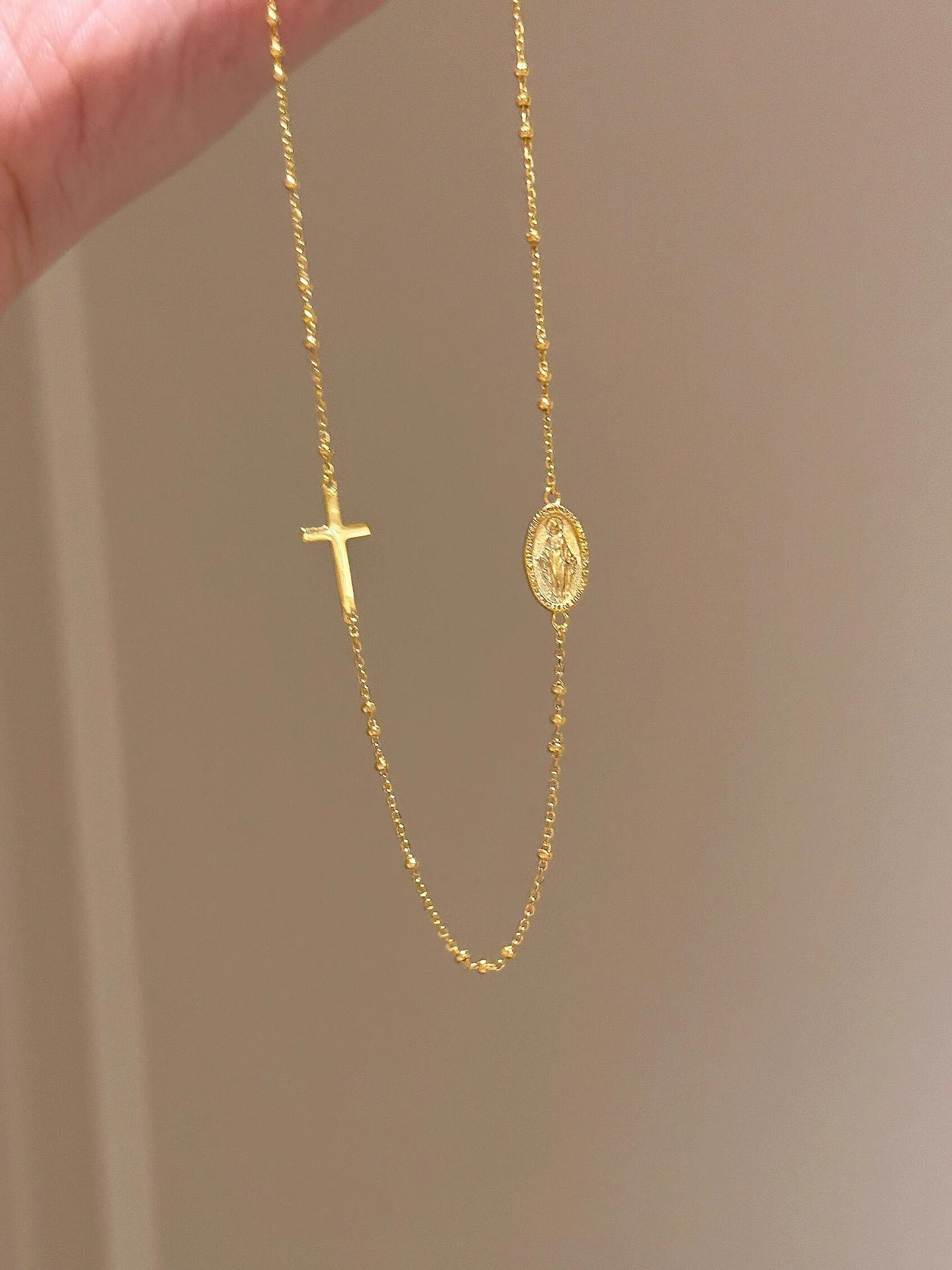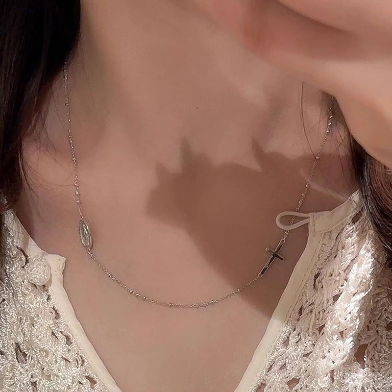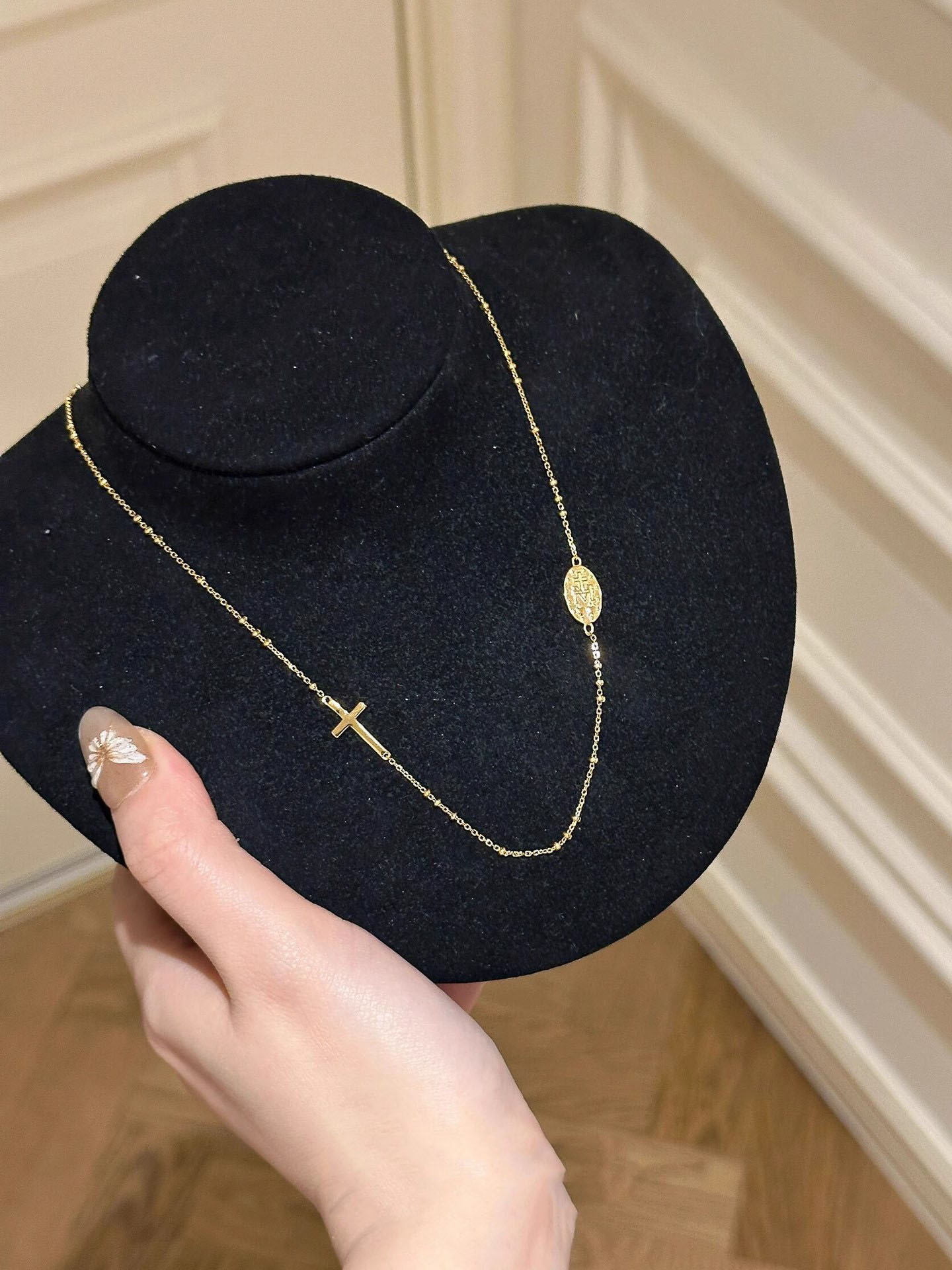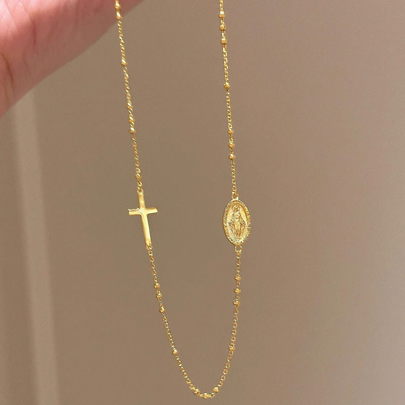 Xiaohongshu's Popular Cross Engraved Disc Seaside Resort Style Necklace Women's Exquisite Clavicle Chain Drop Shipping