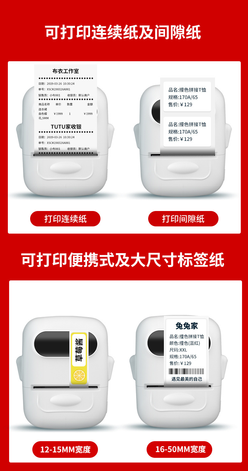 Specification: White [12-50mm printable]-[universal] + 5 rolls of 40*30 special price marking paper