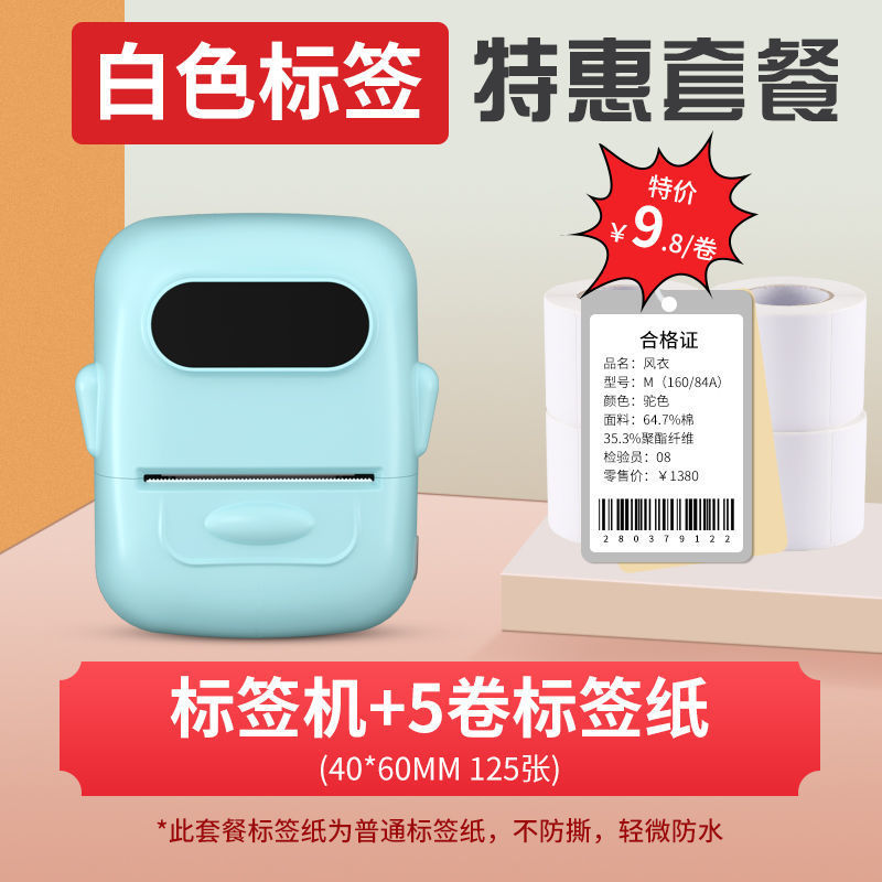 Specification: Blue-green [12-50mm printable]-[clothing] + 10 rolls of 40*60 special price marking paper