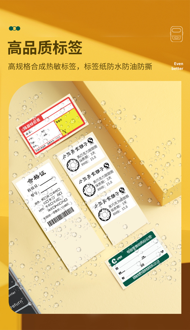 Specification: Creamy yellow [12-50mm printable] - stand-alone + 5 rolls of white waterproof labels