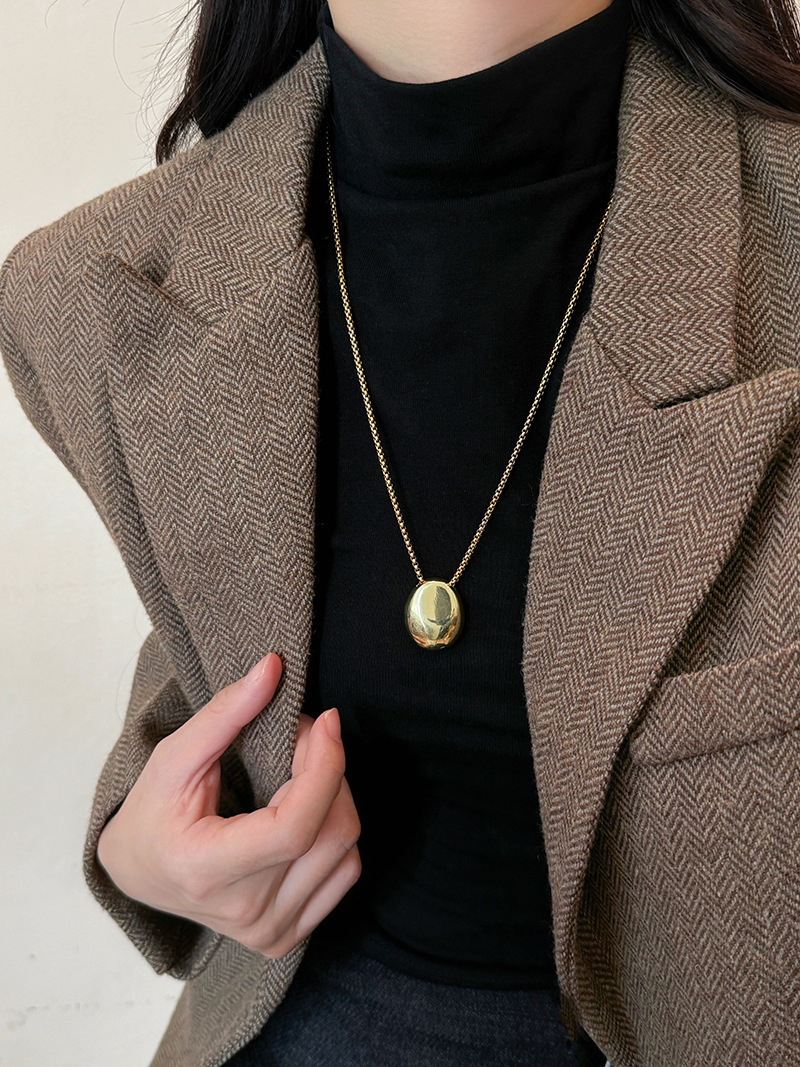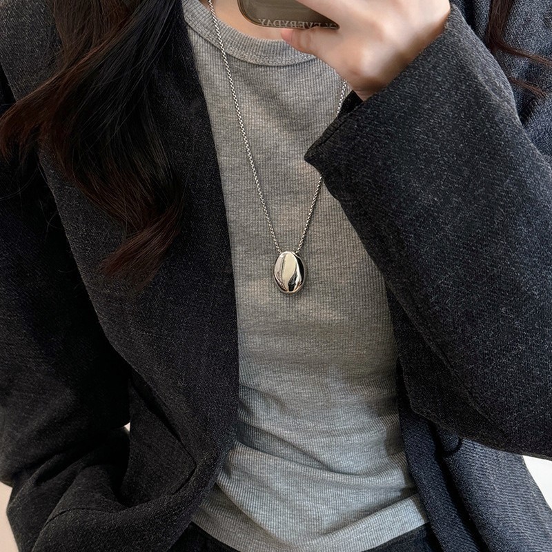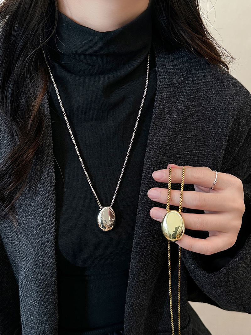 Minimalist Metal Oval Pendant Necklace for Women, Ins Style Long Sweater Chain, 2025 New Trendy Personalized Accessory