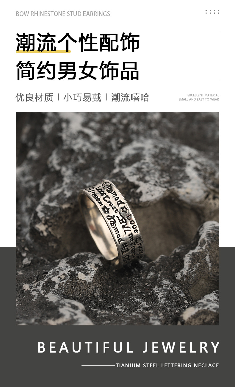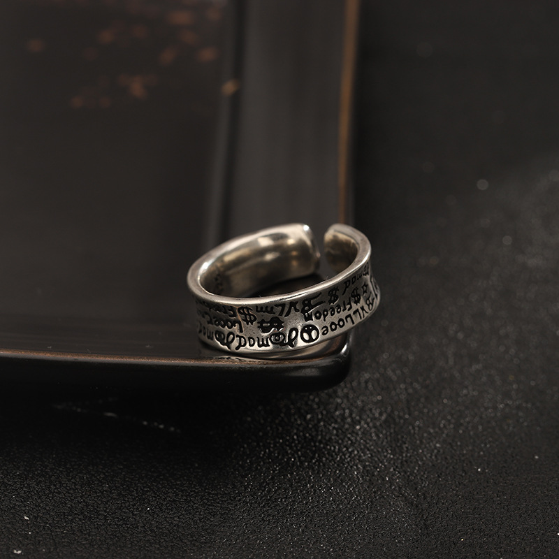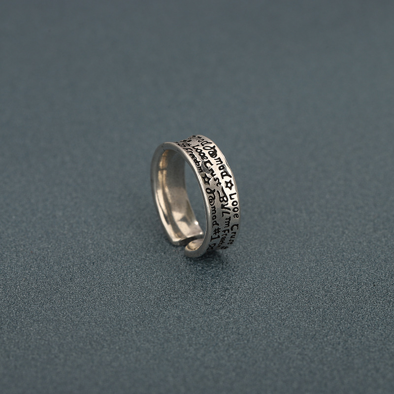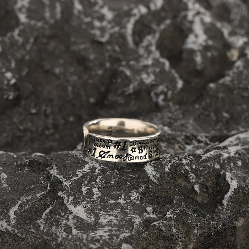 Free Shipping Titanium Steel Vintage Artistic Graffiti Letter Ring for Men, Hip-Hop Street Accessories for Women, Trendy Jewelry Wholesale