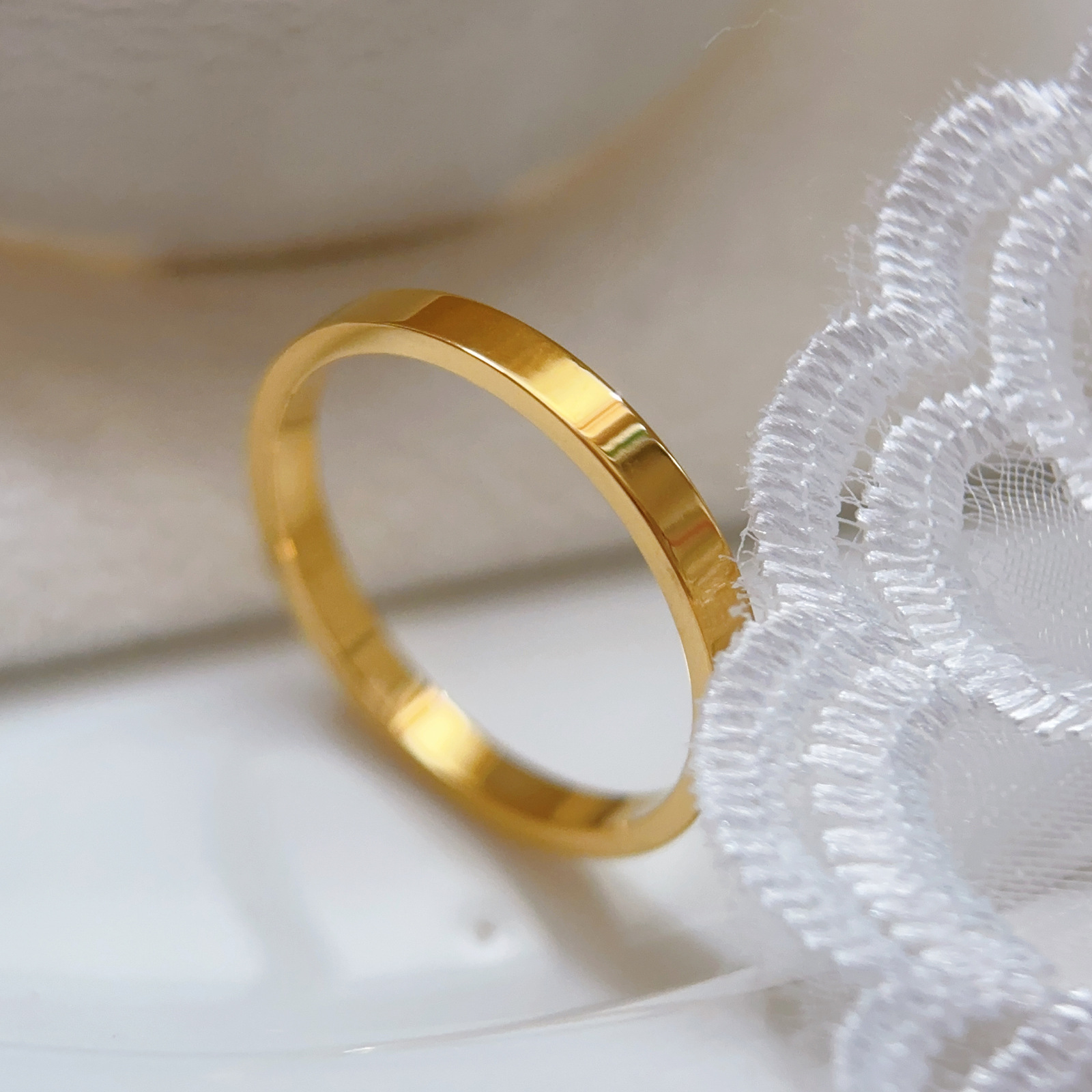 2.5mm Ancient Heritage Plain Gold Ring for Men and Women, Niche Fashion Personality Titanium Steel Index Finger Ring, Popular Style, Simple