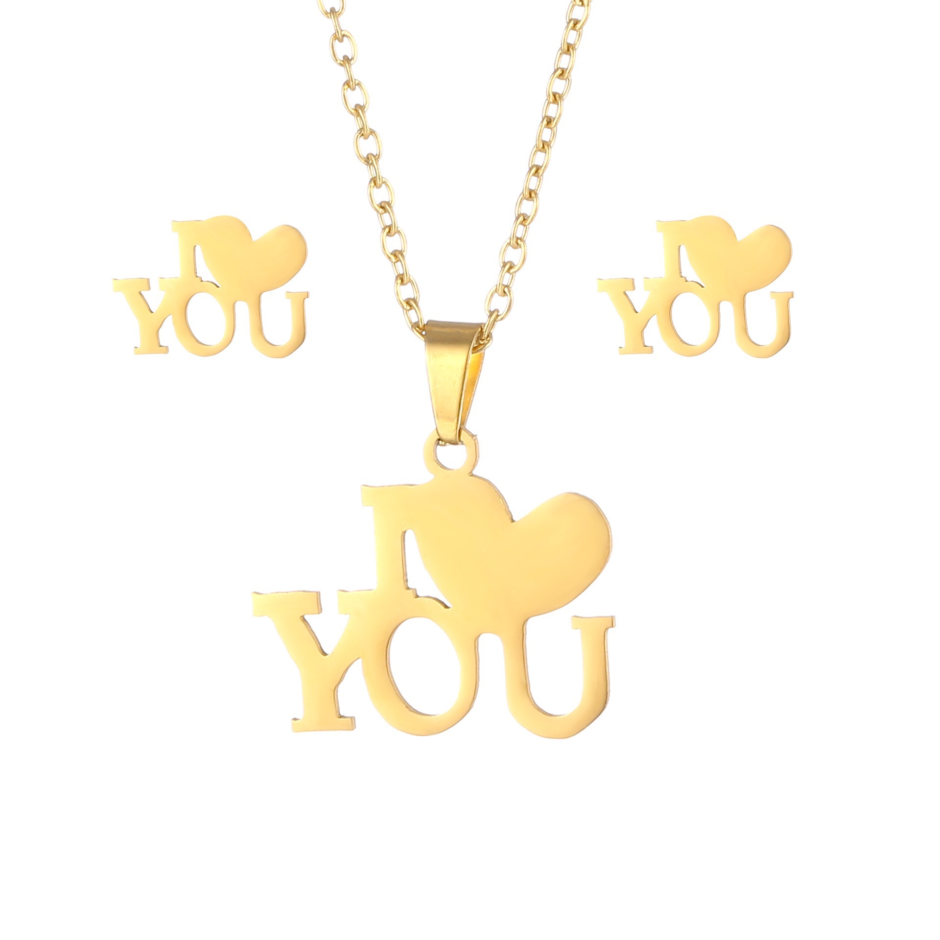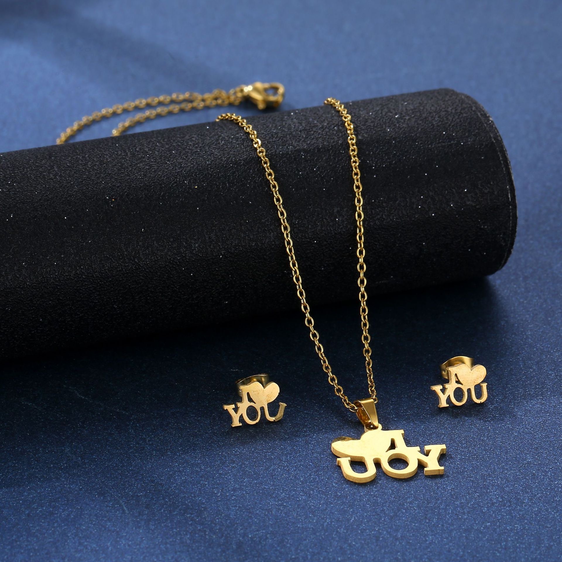 Cross-Border Heart Necklace and Earrings Set 18K Gold Stainless Steel Heart-Shaped Clavicle Chain Earrings Three-Piece Jewelry Set