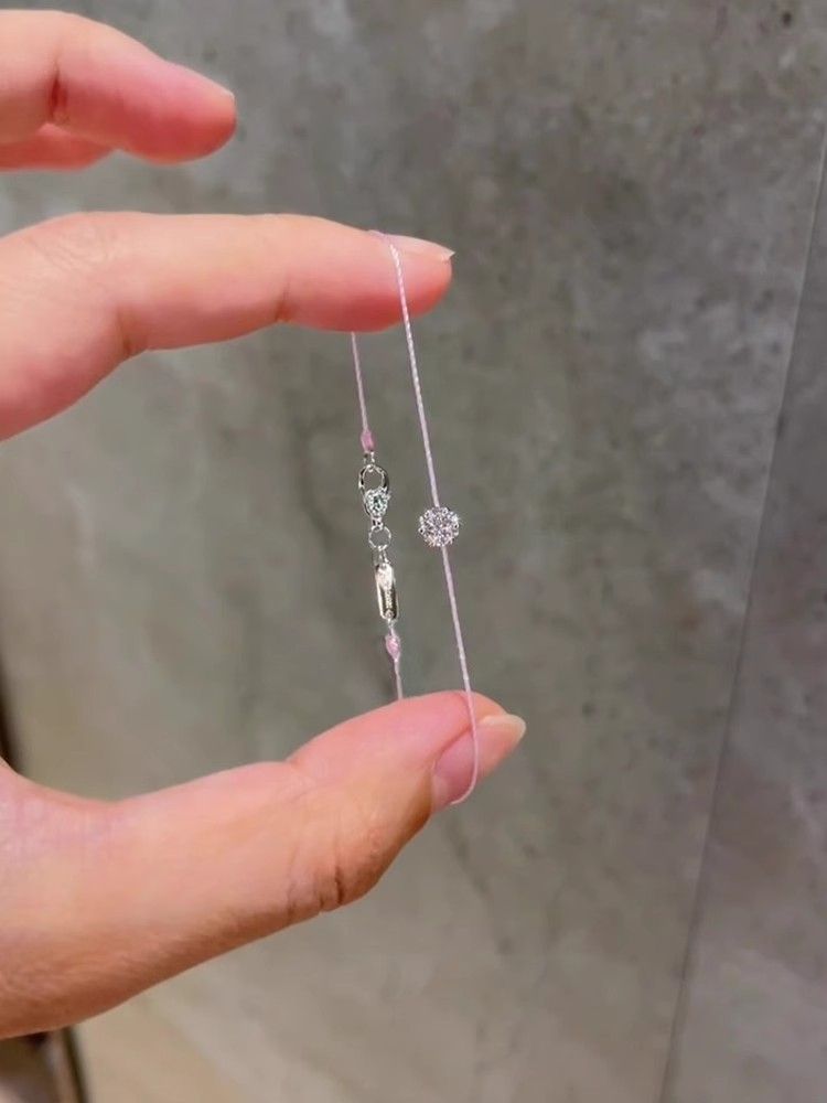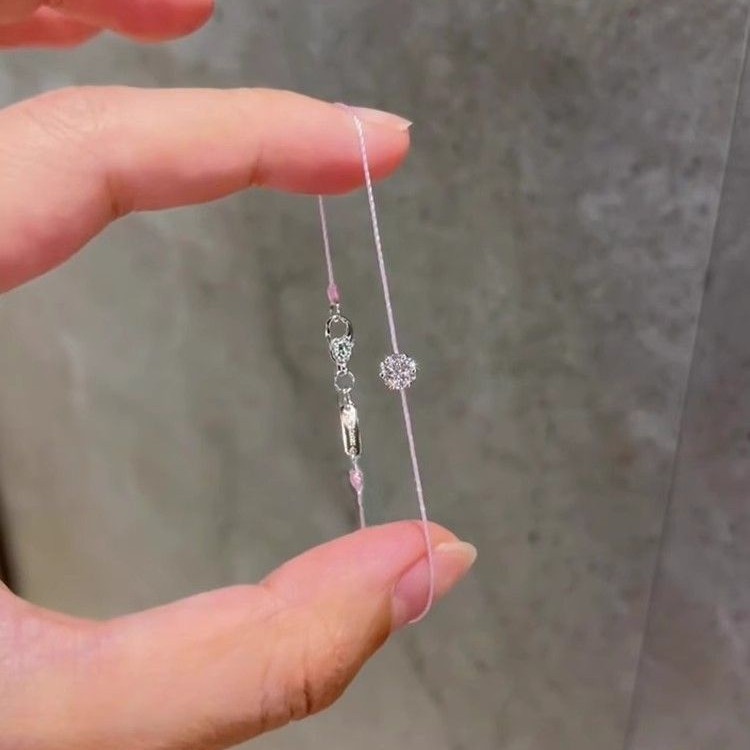 French Minimalist Pink Flower Zircon Bracelet for Women, Simple Design Braided Bracelet, Fashionable and Sexy Hand Jewelry