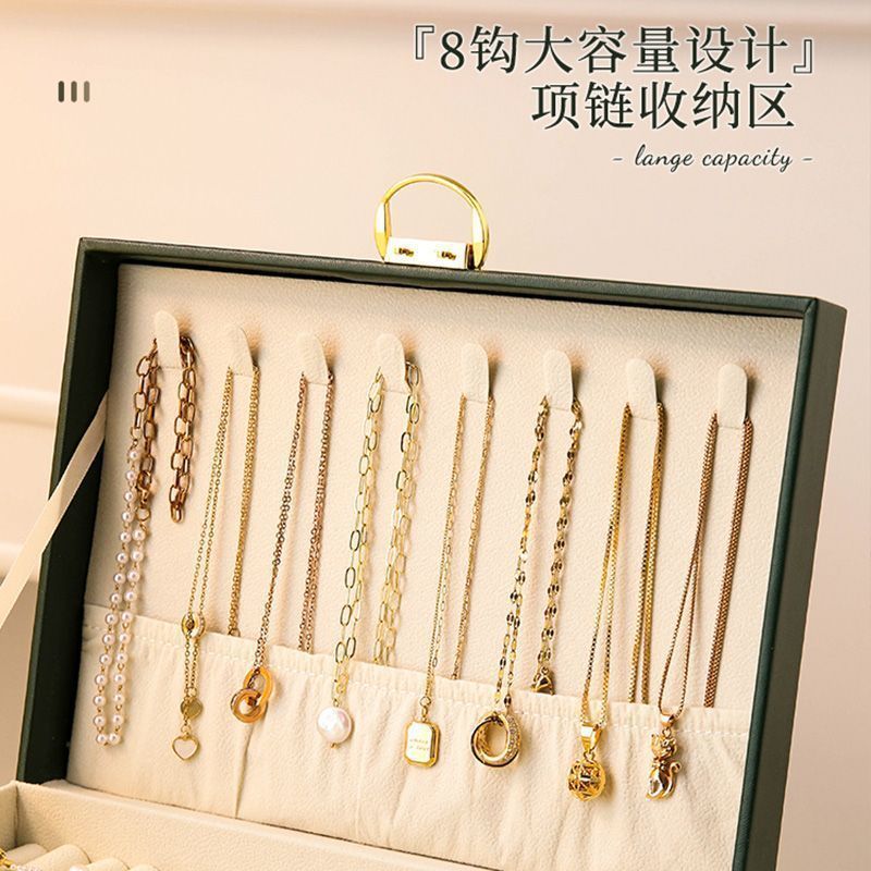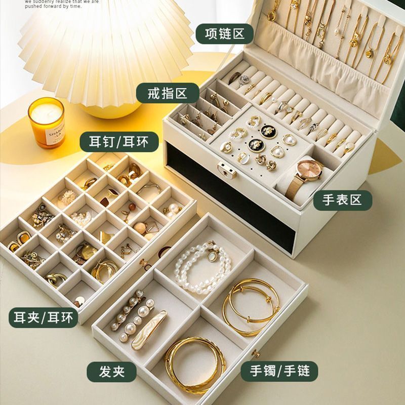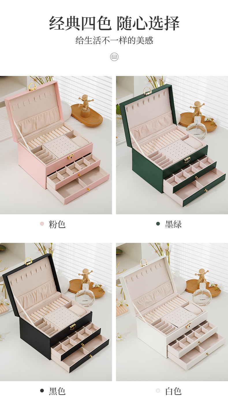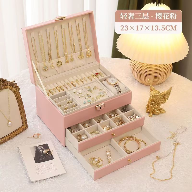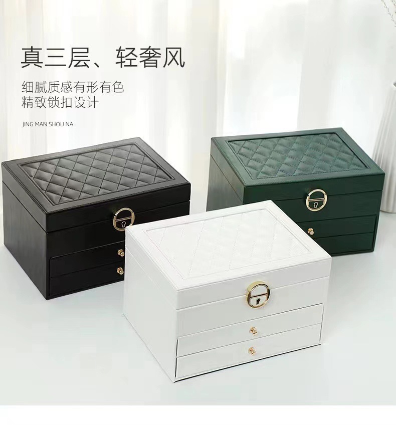 Large-Capacity Three-Layer New Diamond Pattern Necklace and Earrings Jewelry Storage Box with Lock High-End Jewelry Drawer Jewelry Box