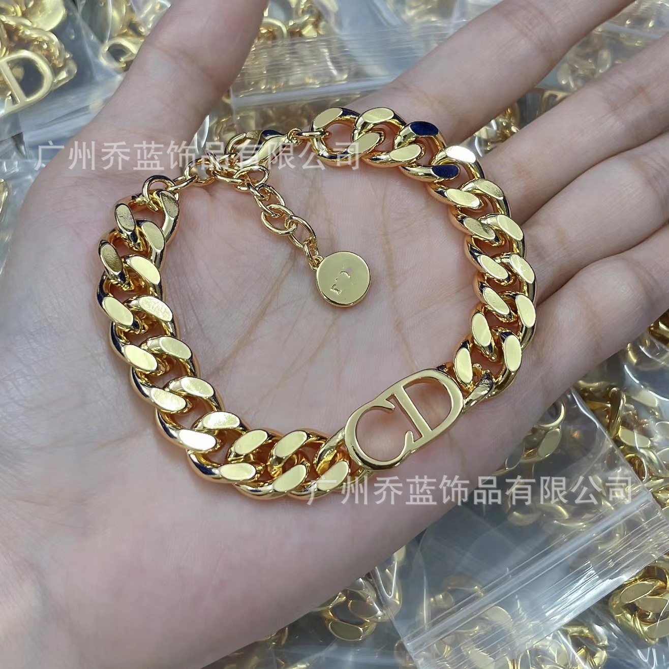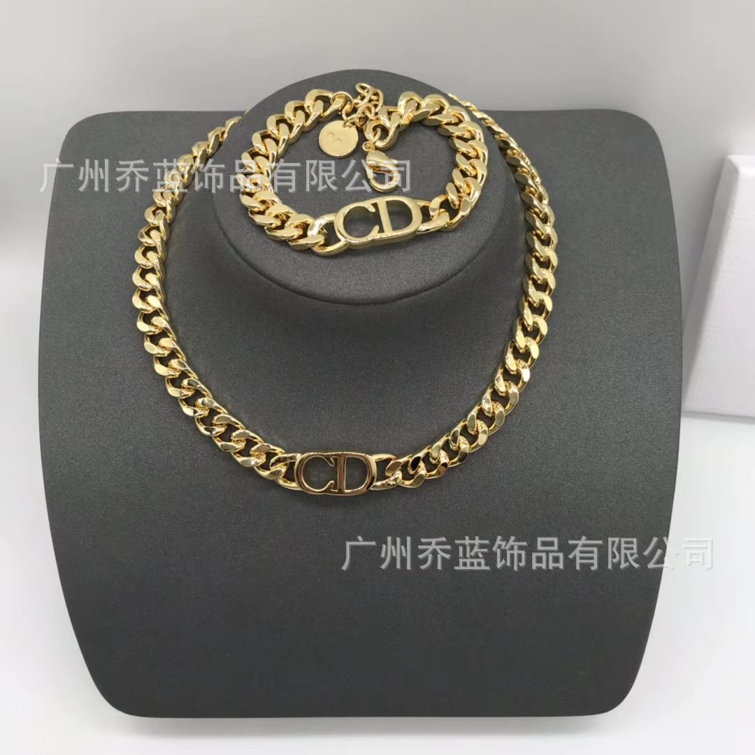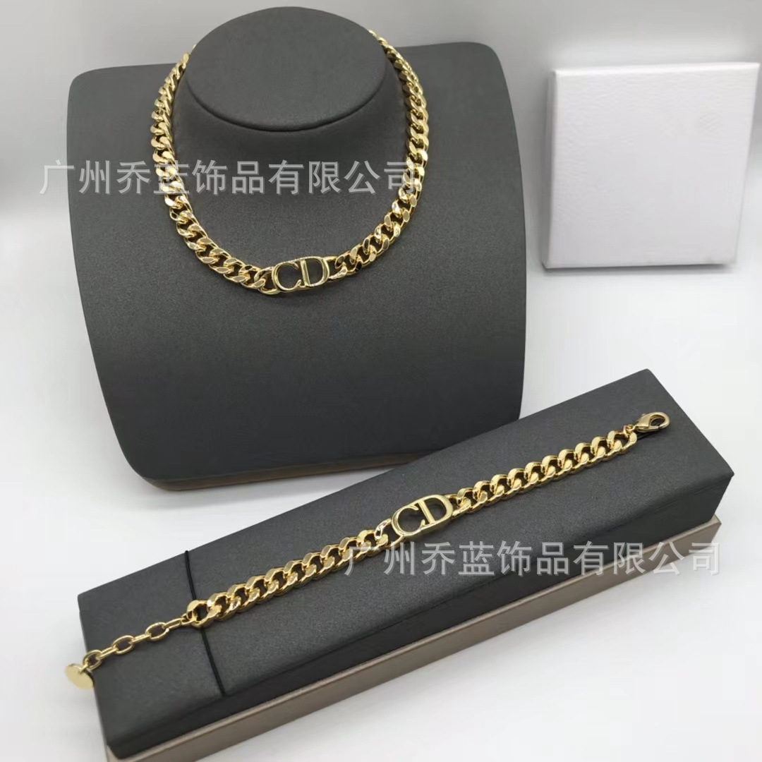 High-End Version对标 Dijia Letter Cd Gold Color Cuban Chain Set Necklace Women's Trendy Bracelet Wholesale Dropshipping