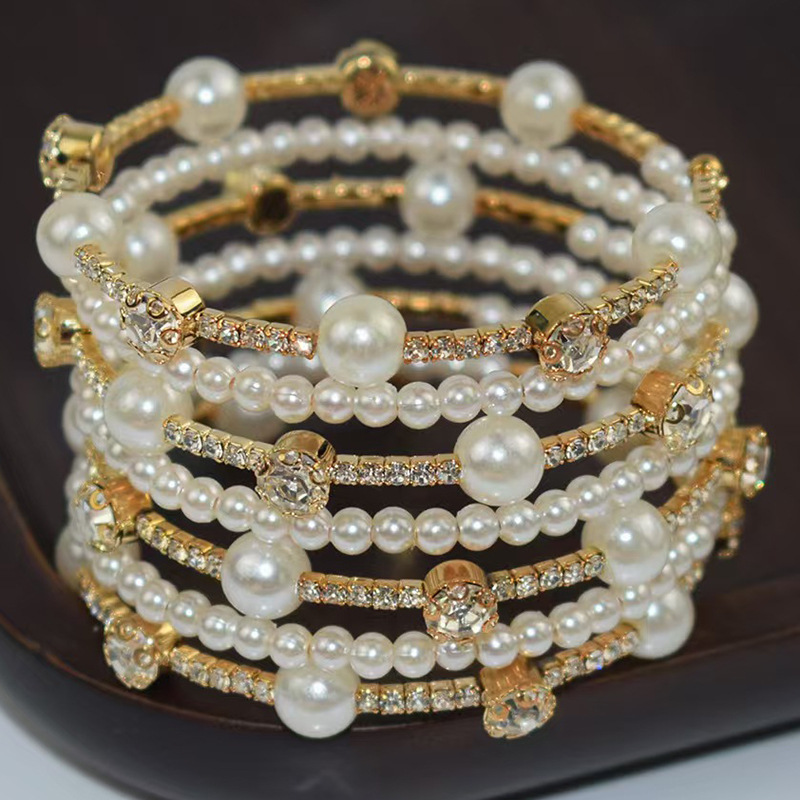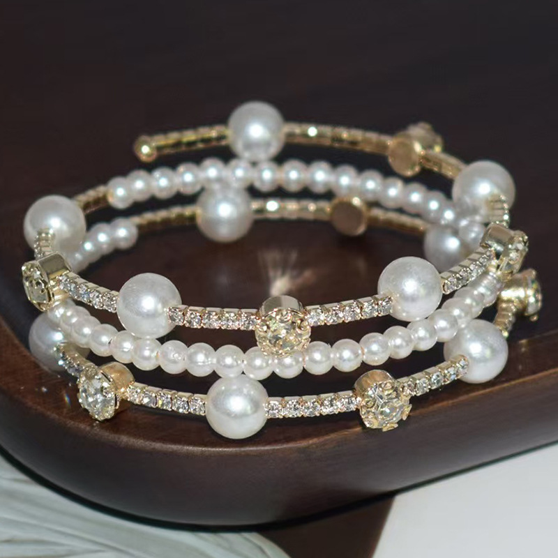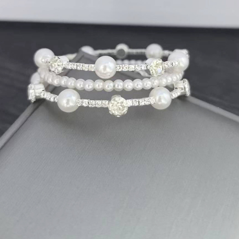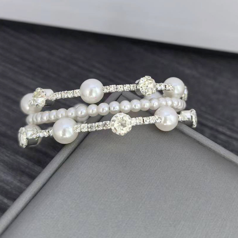 Color: No. 2 silver three-row diamond pearl bracelet (environmentally friendly)