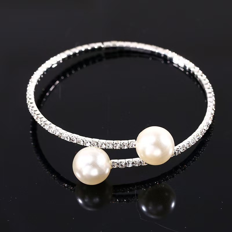 Color: 2 pearls single row bracelet silver (environmentally friendly)