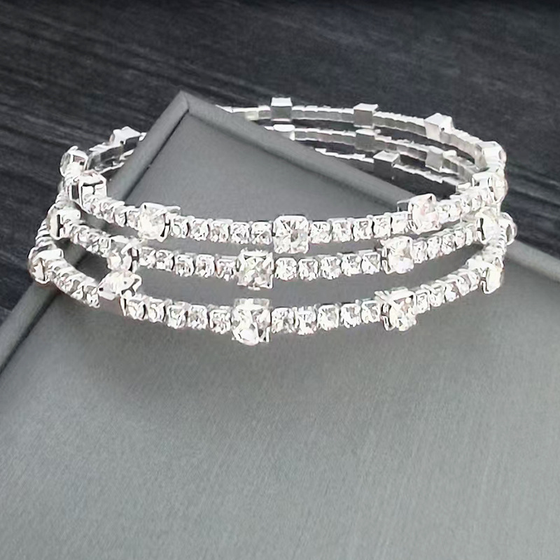 Color: Silver three-row diamond bracelet (environmentally friendly)