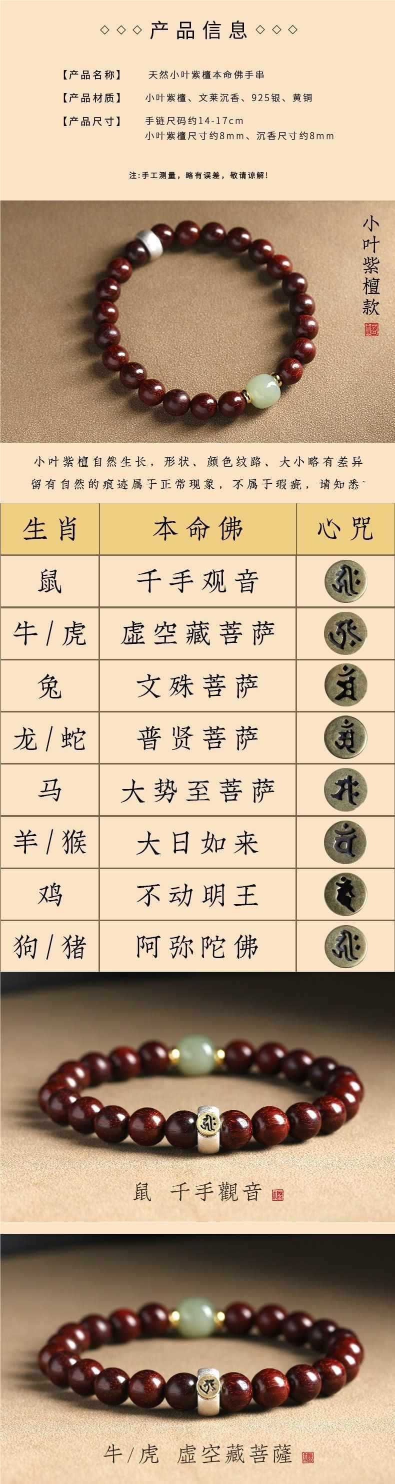 Color: 8mm small leaf rosewood and field jade top bead natal buddha - rat - thousand-hand guanyin -