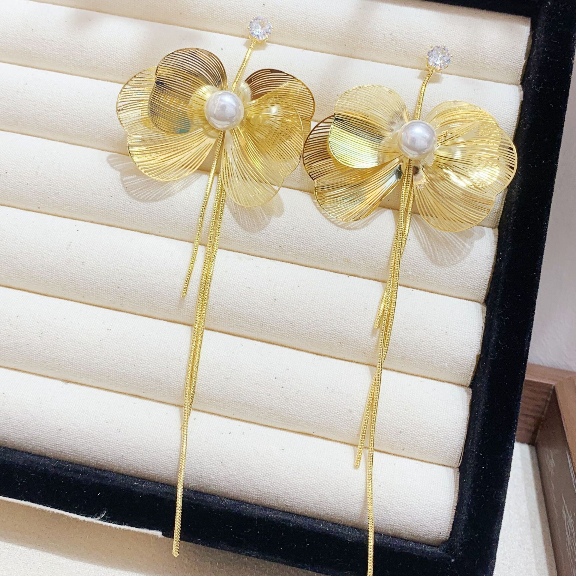 Korean-Style Ultra-Shiny Elegant Luxury High-End Gold Butterfly Pearl Earrings Fashion Internet Celebrity Hot Versatile Earrings