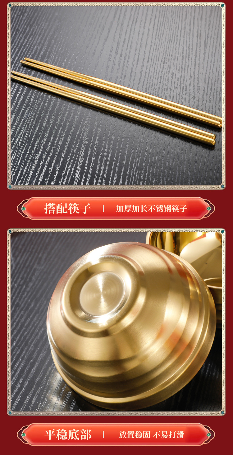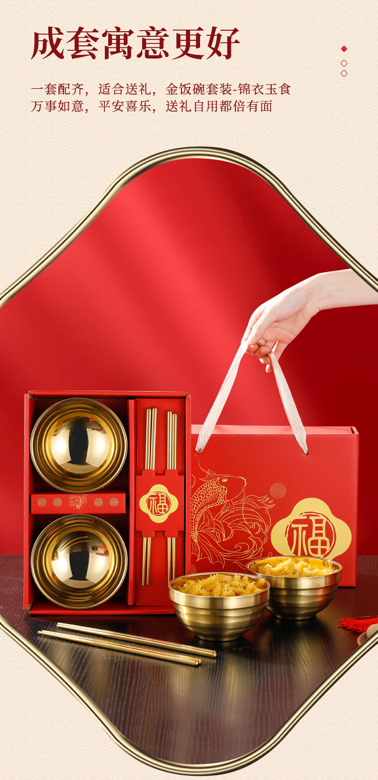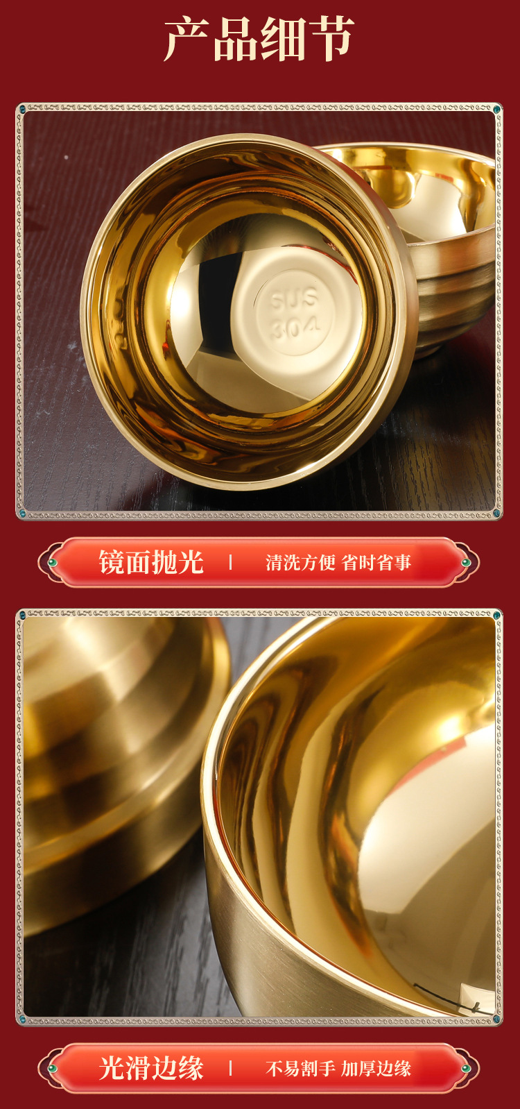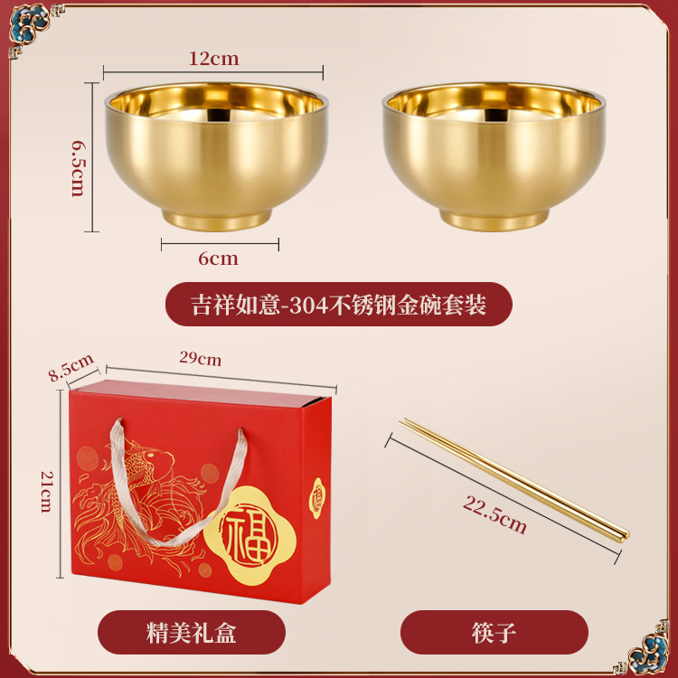 304 Gold Bowl Set Gift Box Stainless Steel Double-Layer Bowl Gold Chopsticks Tableware Bank Insurance Jewelry Gift Holiday