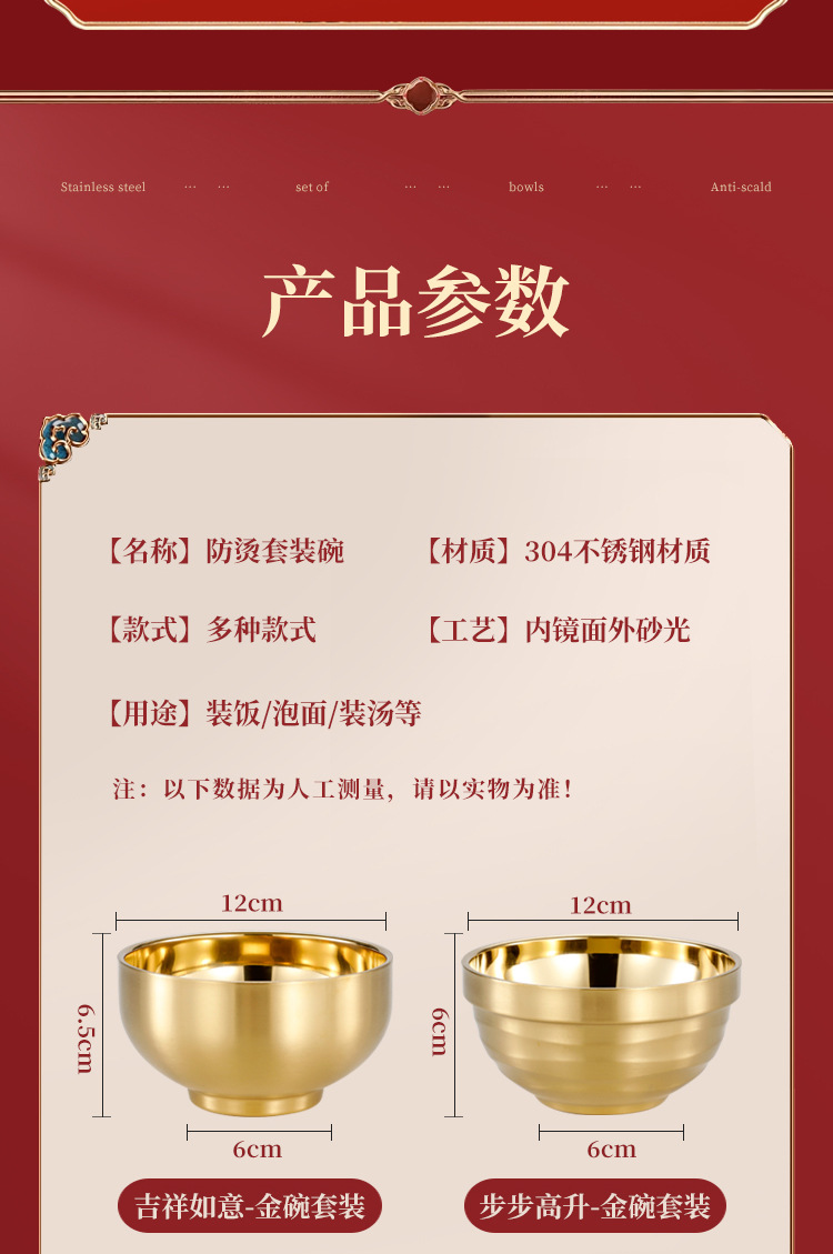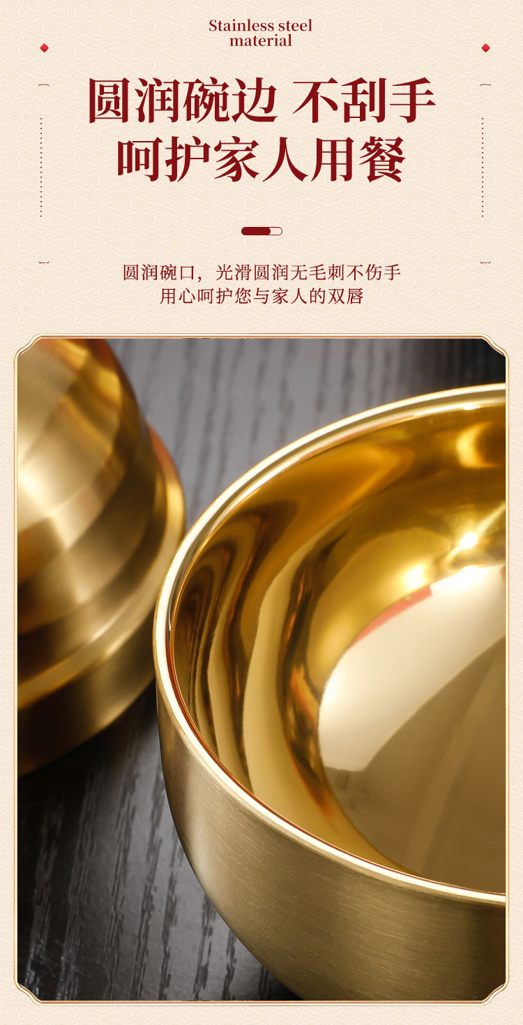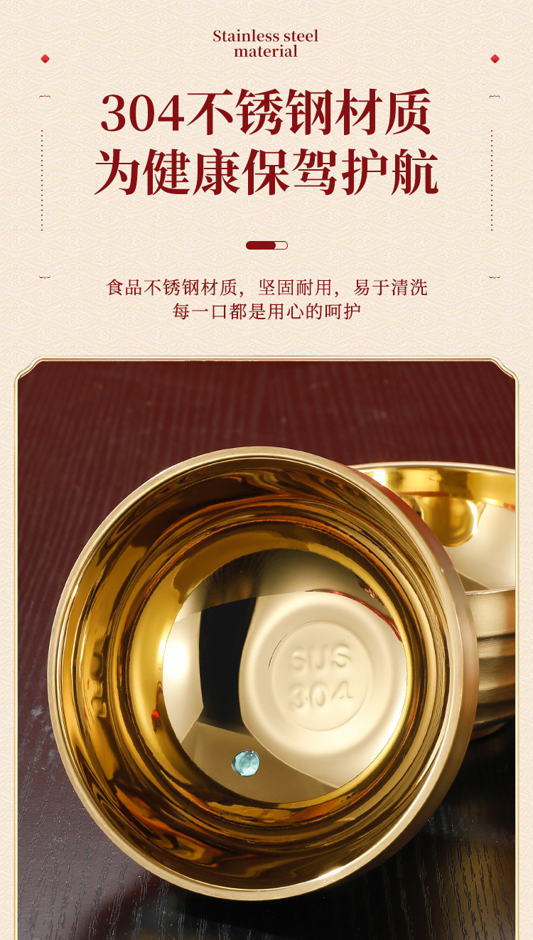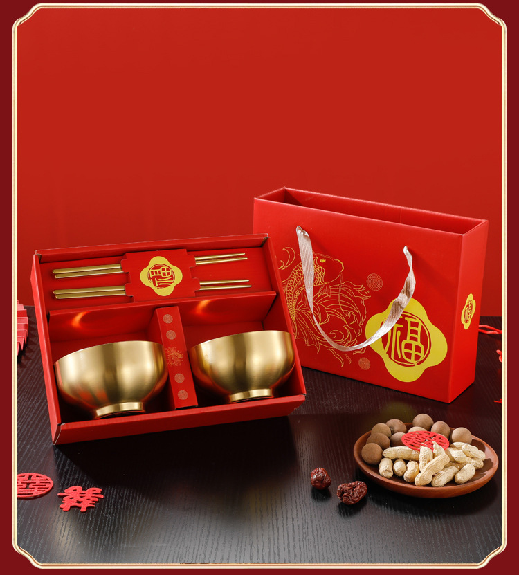 304 Gold Bowl Set Gift Box Stainless Steel Double-Layer Bowl Gold Chopsticks Tableware Bank Insurance Jewelry Gift Holiday