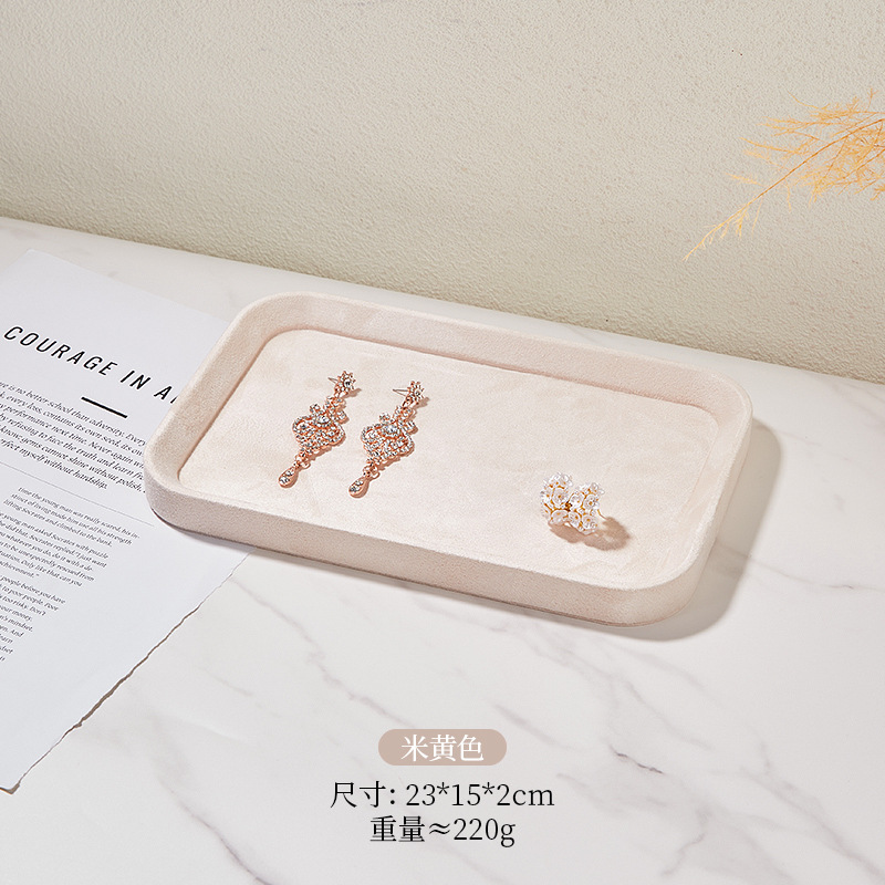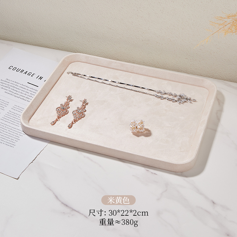 Specifications and models: Beige rectangular small size; microfiber jewelry tray