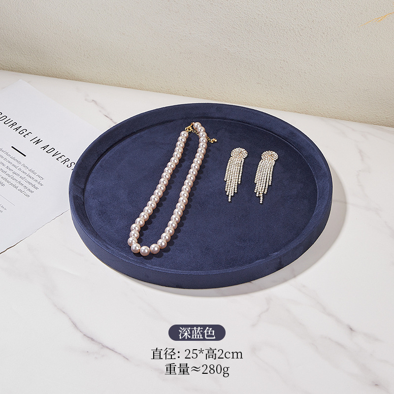 Specifications and models: Dark blue round large size; microfiber jewelry tray
