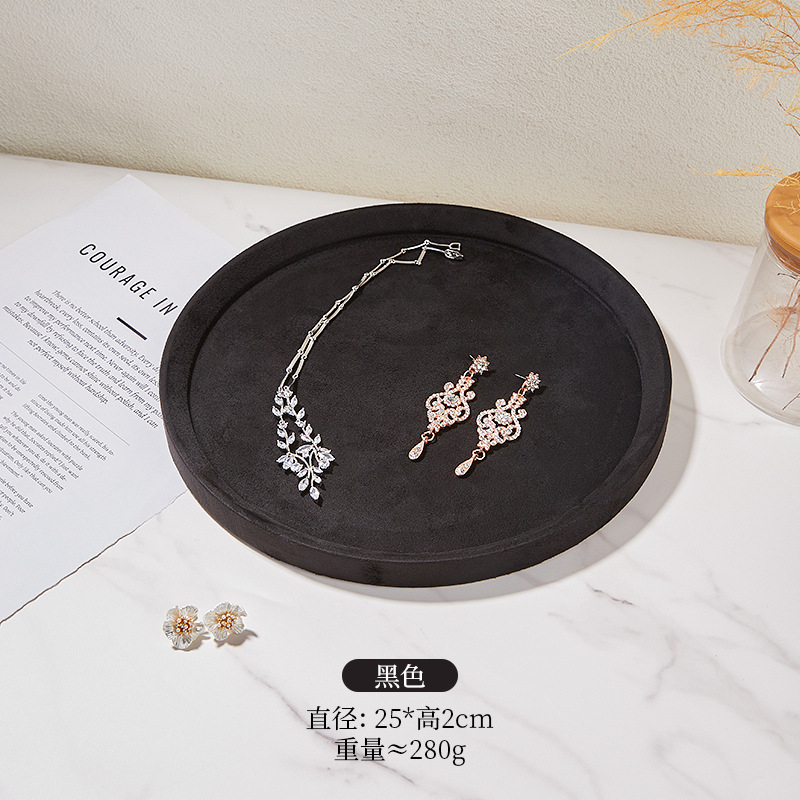 Specifications and models: Black round large size; microfiber jewelry tray